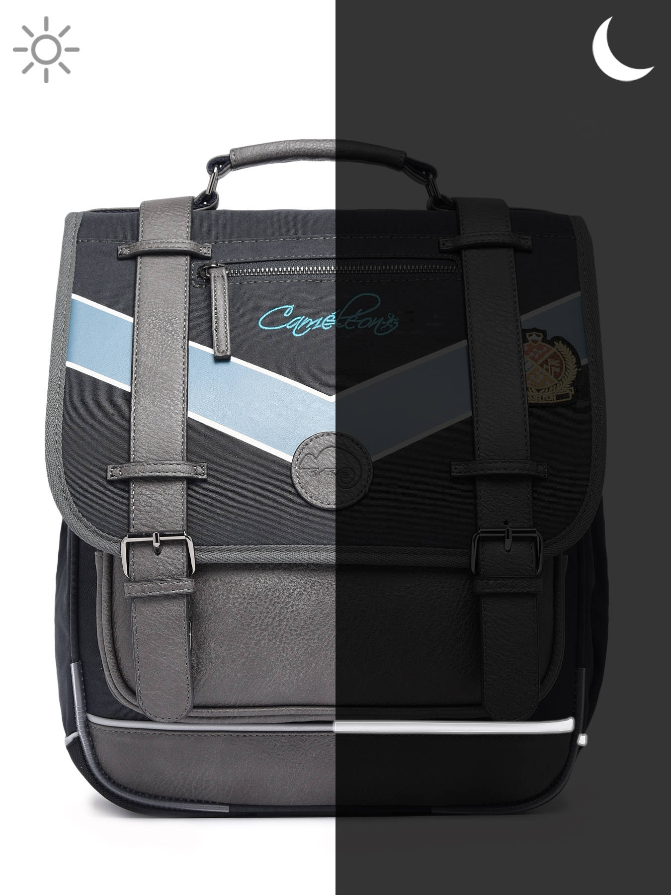 39 cm - 19 liters - 1.12 kg ~ 39 cm Backpack for Primary School from the Vintage Urban line by Caméléon. We love this redesigned backpack, perfect for smaller frames, such as young children. This backpack is ideal for CP and CE1 students. The weight of school supplies will be better distributed, which will relieve the child's back. The two compartments of this backpack are perfect for A4-sized notebooks. A slot for a ruler has been included, as well as an elastic band for the water bottle. For the child's comfort, the back and straps are padded, and the bottom of the bag is reinforced. For safety, this backpack features reflective strips. Made from recycled polyester.