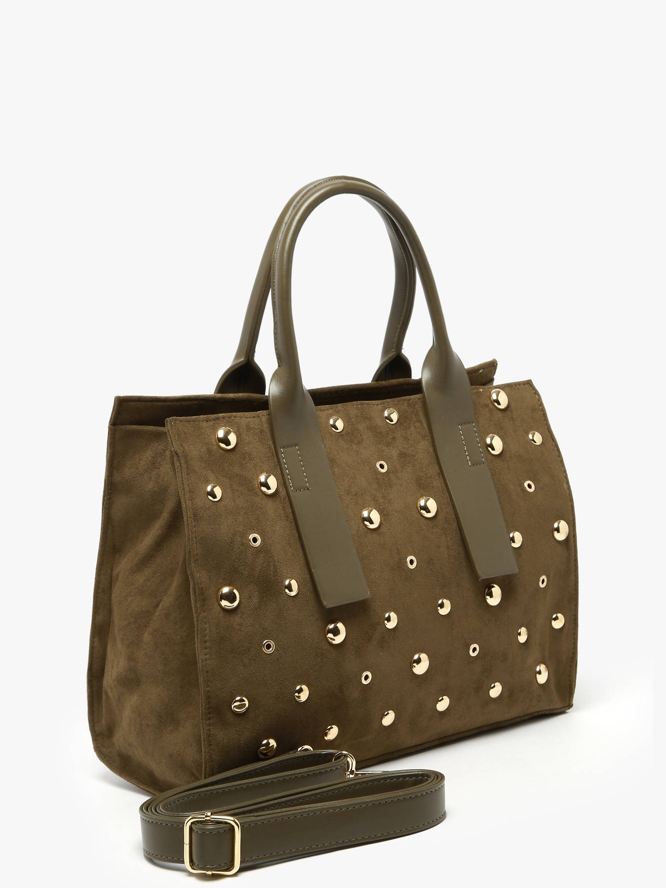 This A4 Stud David Jones handbag, crafted from durable synthetic material, combines modern elegance, functionality, and versatility. Its zip closure secures your belongings while adding a contemporary touch to its sleek design. The two side pockets and back pocket provide quick access to essentials, while the adjustable, removable shoulder strap and 13 cm handle allow for hand or crossbody wear according to your needs. Inside, a main compartment, two slip pockets, and a zip pocket ensure optimal organization for documents, phone, and other essentials. Compact yet spacious enough for A4 items, this bag stands out with modern lines, refined finishes, and lightweight design, adding sophistication to any outfit. Versatile and practical, it accompanies city days, professional appointments, or outings, combining style, comfort, and functionality.