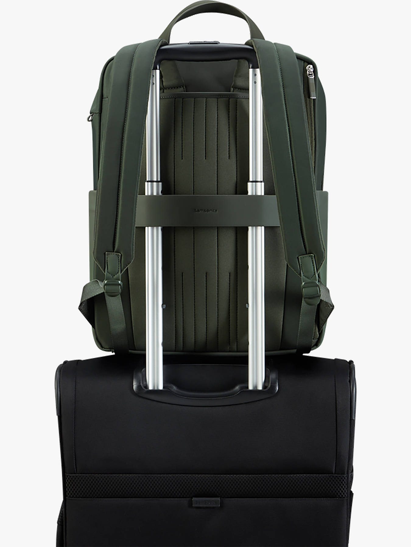The SAMSONITE business backpack is the ideal accessory for professionals on the go. Made from polyester, it combines lightweight and durability. On the outside, a zippered front pocket allows for quick access to your essentials, while adjustable straps ensure optimal comfort whether you carry it on your back or by hand. A support strap for a telescopic handle makes it easy to transport on a suitcase. Inside, a spacious compartment accommodates a laptop up to 15.6 inches and features a special tablet pocket. Additionally, it has a zip pocket for easy organization and can hold A4 folders, 24x32 notebooks, and A4 binders. This backpack blends functionality and elegance for your professional travels.