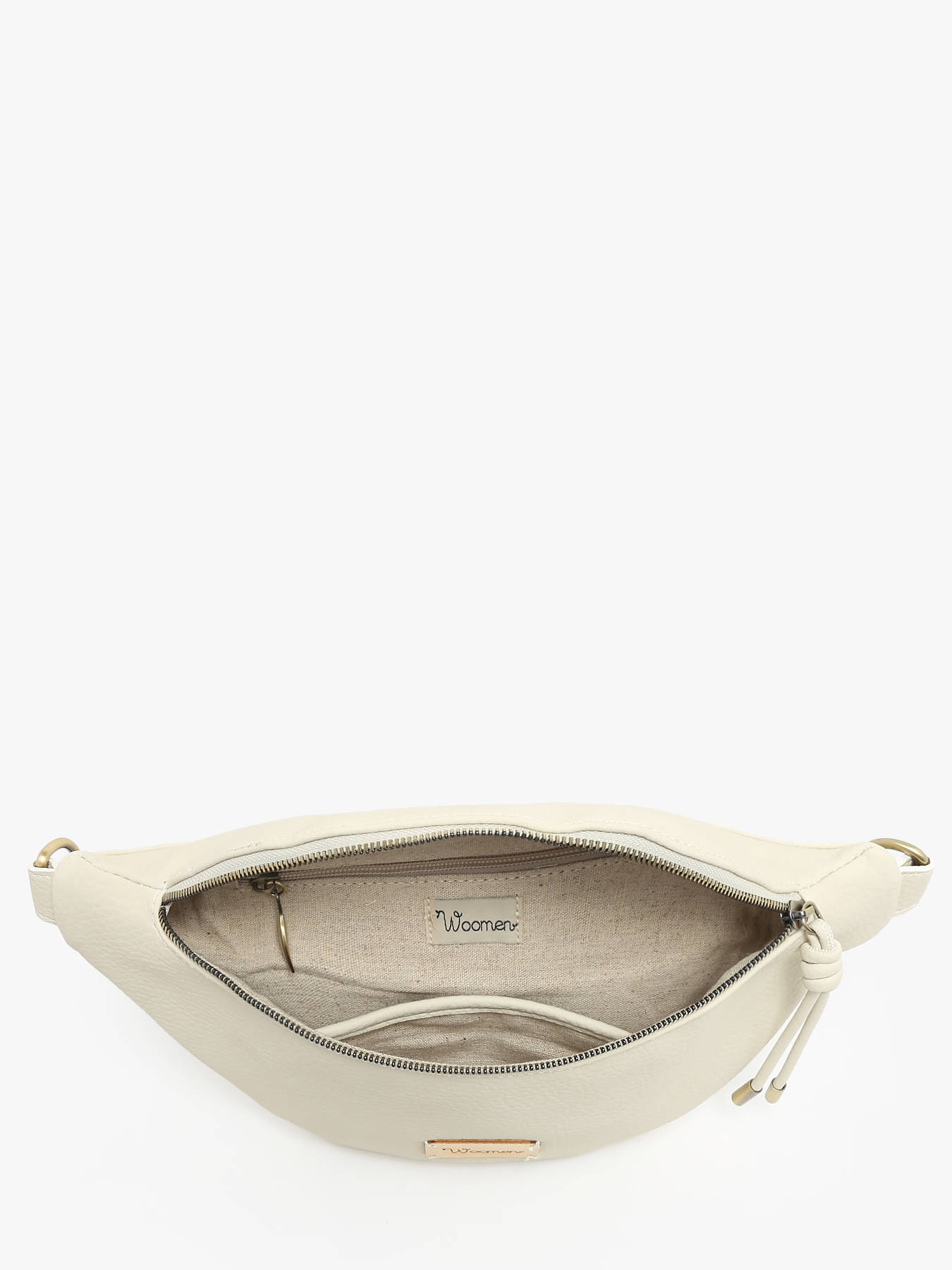 This belt bag from WOOMEN's MUSCARI line is made from recycled polyurethane with a grained effect and a peach-skin feel. It features a zippered closure and comes with an adjustable, removable strap, allowing it to be worn around the waist or across the chest. Inside, it includes a slip pocket, a zippered pocket, and a single compartment for practical organization.