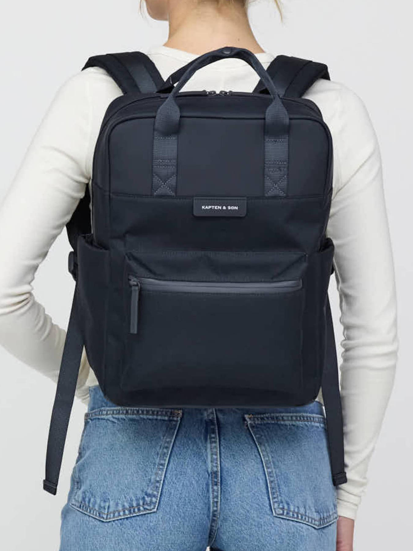 The KAPTEN AND SON backpack, made from recycled PET, combines durability and functionality for everyday use. It features one front pocket, two side pockets, and one back pocket, providing multiple practical storage options. The zip closure secures your belongings while adjustable straps ensure optimal comfort when worn on the shoulder or back. The support loop allows easy attachment to a telescopic handle, perfect for travel. Inside, it offers a main compartment with two simple pockets and one zipped pocket, plus a dedicated laptop pocket up to 15 inches and a special tablet compartment. This backpack can hold A4 folders and notebooks up to 24x32 cm, making it ideal for students and professionals on the move. Its modern, eco-friendly design makes KAPTEN AND SON a practical and responsible choice.