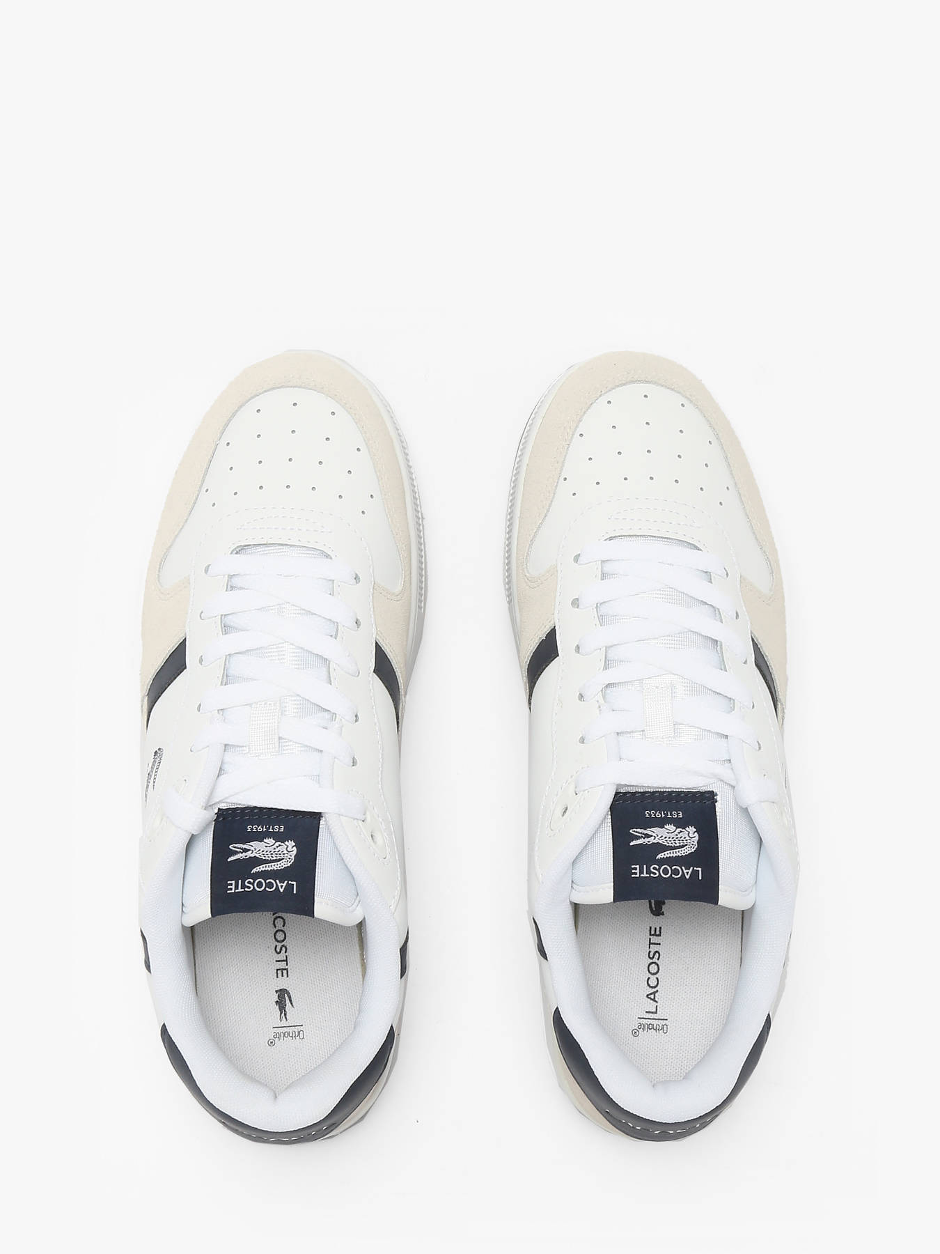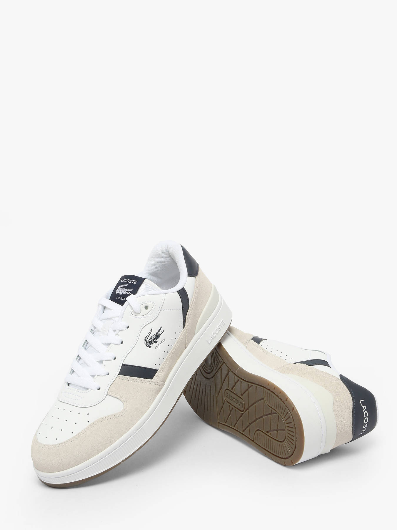 The LACOSTE T-Clip Set sneakers stylishly revisit 1980s tennis heritage. Featuring a white leather upper with navy suede inserts and refined vintage details, they deliver a retro-chic, authentic look. The embossed central crocodile embodies the brand’s timeless elegance. Both sporty and sophisticated, these sneakers combine comfort and style for a versatile urban silhouette that suits every occasion.