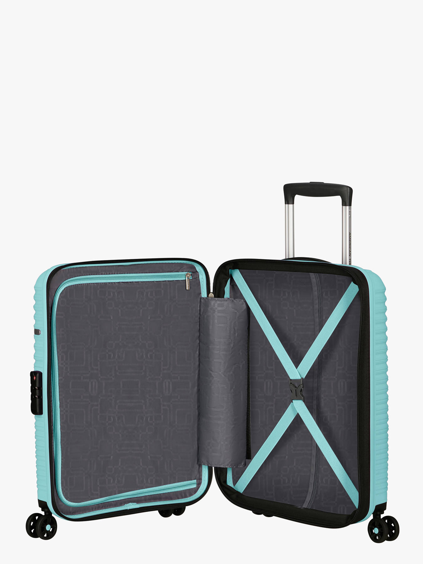 Compact, lightweight, and ultra-convenient, the American Tourister LiftOff 55 cm cabin suitcase is perfect for short getaways or air travel. Made from durable polypropylene, it combines strength with lightness at just 2.2 kg. Its 33.5 L volume can be expanded for extra space, ideal for last-minute additions. With four smooth-rolling wheels, a multi-stage telescopic handle, and top and side carry handles, it ensures effortless mobility. For added security, it features a TSA-approved combination lock. Inside, cross elastic straps and a fully lined divider help keep your belongings neatly organized. Finished with a color-matched zipper and a sleek metal logo, it boasts a modern, dynamic design—perfect for stylish travel.
