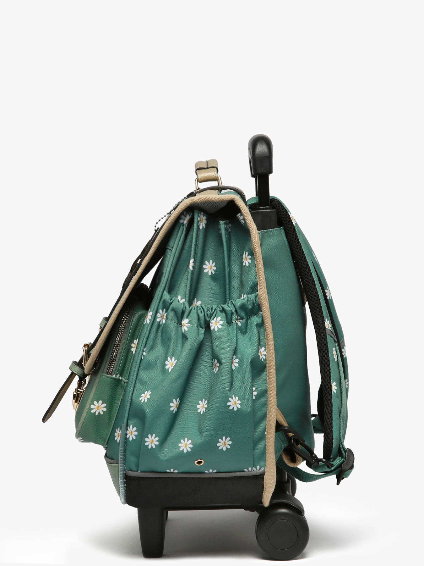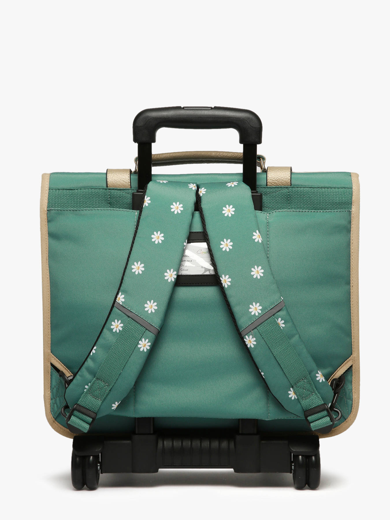 Ce cartable à roulettes 3 compartiments 41cm de la ligne Vintage Fantasy de chez Caméléon est idéal pour le CM1 et le CM2. On aime ce cartable pour son grand espace, il se compose de trois compartiments permettant d’y glisser des cahiers ainsi que des classeurs allant jusqu’à 32x29x7cm. Il se compose également d’une poche intérieure zippée. À l’extérieur, il se compose de deux poches à fermeture éclair sur le devant ainsi que d’un porte gourde sur le côté. Une bande réfléchissante est présente sur l’avant afin de garantir la sécurité de votre enfant. Son fond ainsi que ses côtés sont renforcés, permettant une utilisation quotidienne. Il est aussi possible de l'utiliser en sac à dos grâce aux bretelles déclipsables qui se trouvent dans la poche arrière du sac et à la protection rembourrée au niveau de l'armature des roues pour protéger le dos de votre enfant. Afin de garantir un maintien optimal, les bretelles et le dos de ce cartable sont rembourrés. Petit plus, il dispose d’une étiquette nom, d’une règle offerte et de son porte-clé caméléon sur la poignée !