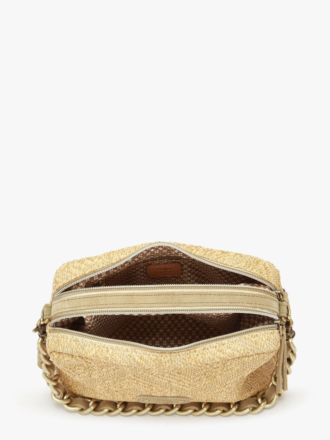 The CM2 MILA LOUISE crossbody bag, crafted from raffia with leather trim, combines natural elegance with contemporary practicality. Its exterior features a secure zip closure and a 15 cm handle, while the adjustable and removable strap allows versatile wear, by hand or over the shoulder. Inside, two compartments and two zip pockets provide optimal organization for essentials such as your phone, wallet, keys, and small accessories. Lightweight and refined, this CM2 MILA LOUISE bag stands out with its elegant design and natural materials, adding a chic and sophisticated touch to any outfit. Perfect for everyday use or outings, it combines style, organization, and comfort, making it a practical and trendy essential.