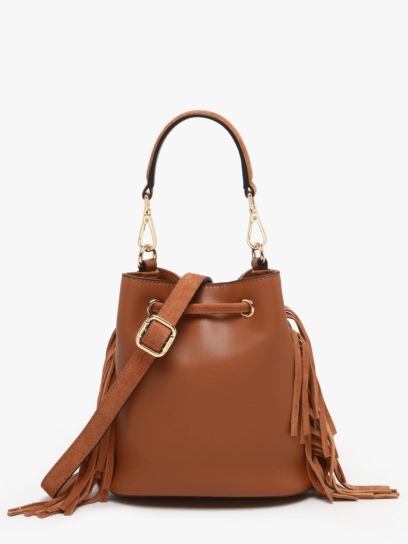 The COUNTRY bucket bag by ETRIER embodies a free-spirited and elegant style, true to the essence of the collection. Crafted from high-quality suede leather with a smooth leather back, it stands out with its iconic fringe detailing and relaxed-chic look. Its closure combines a drawstring and a magnetic snap, providing practical and secure access to your belongings. Versatile, it can be carried by hand using the removable handle or worn crossbody with the adjustable and removable strap, adaptable to all preferences. Inside, a slip pocket and a zippered pocket keep your essentials neatly organized. This bag perfectly combines style, functionality, and everyday comfort.
