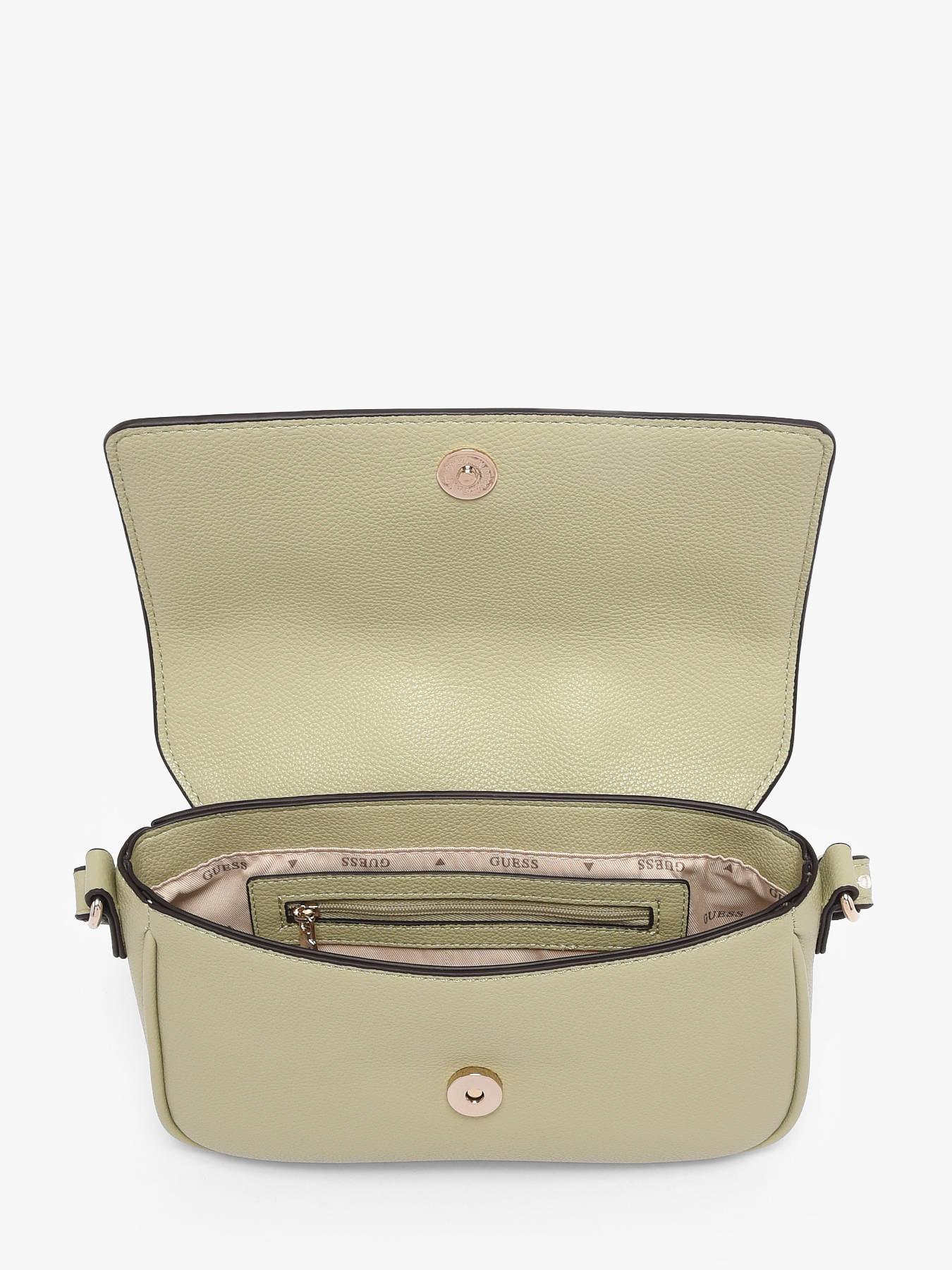 The ISOLA GUESS crossbody bag in PU combines modern style with functionality. Its flap with magnetic closure keeps your belongings secure while providing quick access to essentials. Inside, one main compartment, a zip pocket, and three card slots allow you to organize your items efficiently. On the outside, a back pocket offers practical storage for must-have items. The adjustable strap allows it to be worn on the shoulder or crossbody, while the 31 cm handle height ensures optimal comfort. Compact and structured, this bag perfectly complements urban or sophisticated looks, adding a chic and contemporary touch to any outfit. Every detail, from the refined finishes to the quality PU material, reflects GUESS’s craftsmanship, making this bag a trendy, practical, and elegant accessory for everyday use.