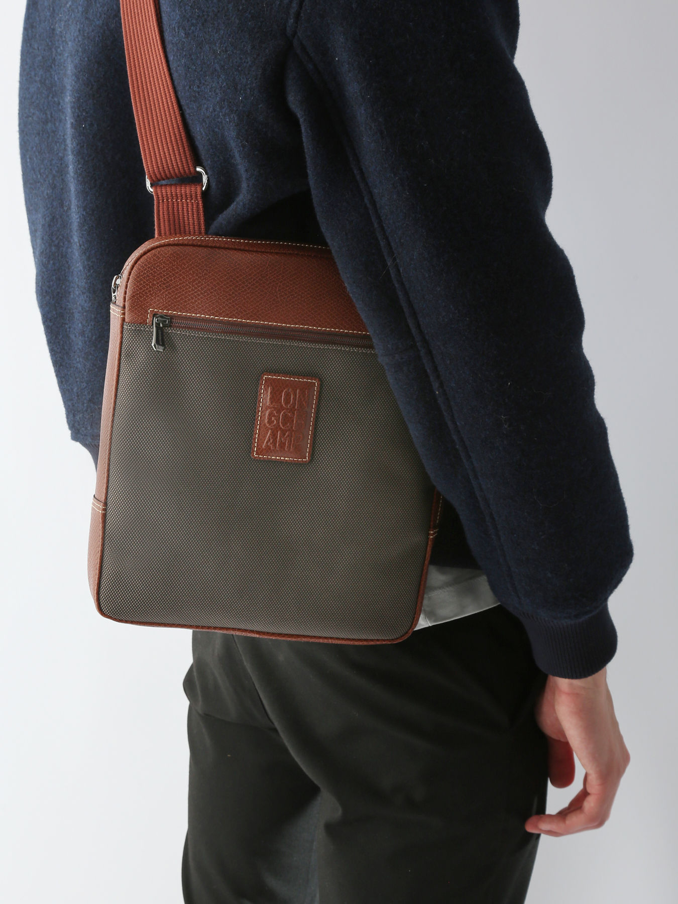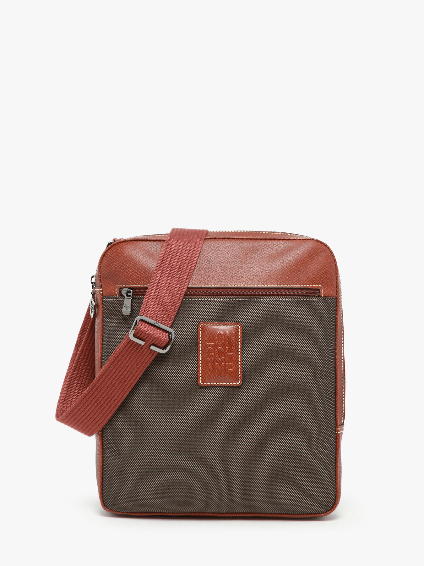 This cross-body bag from Lonchamp has exterior pockets and a functional layout that can accommodate a digital tablet, ideal for keeping the essentials close at hand. BOXFORD is the House's signature line, embodying discreet elegance. Sober and distinctive, this model is adorned with rectangular Longchamp branding embossed in the leather, and contrasting stitching for a refined look. This two-tone canvas is trimmed with Russian leather for a rich relief effect.