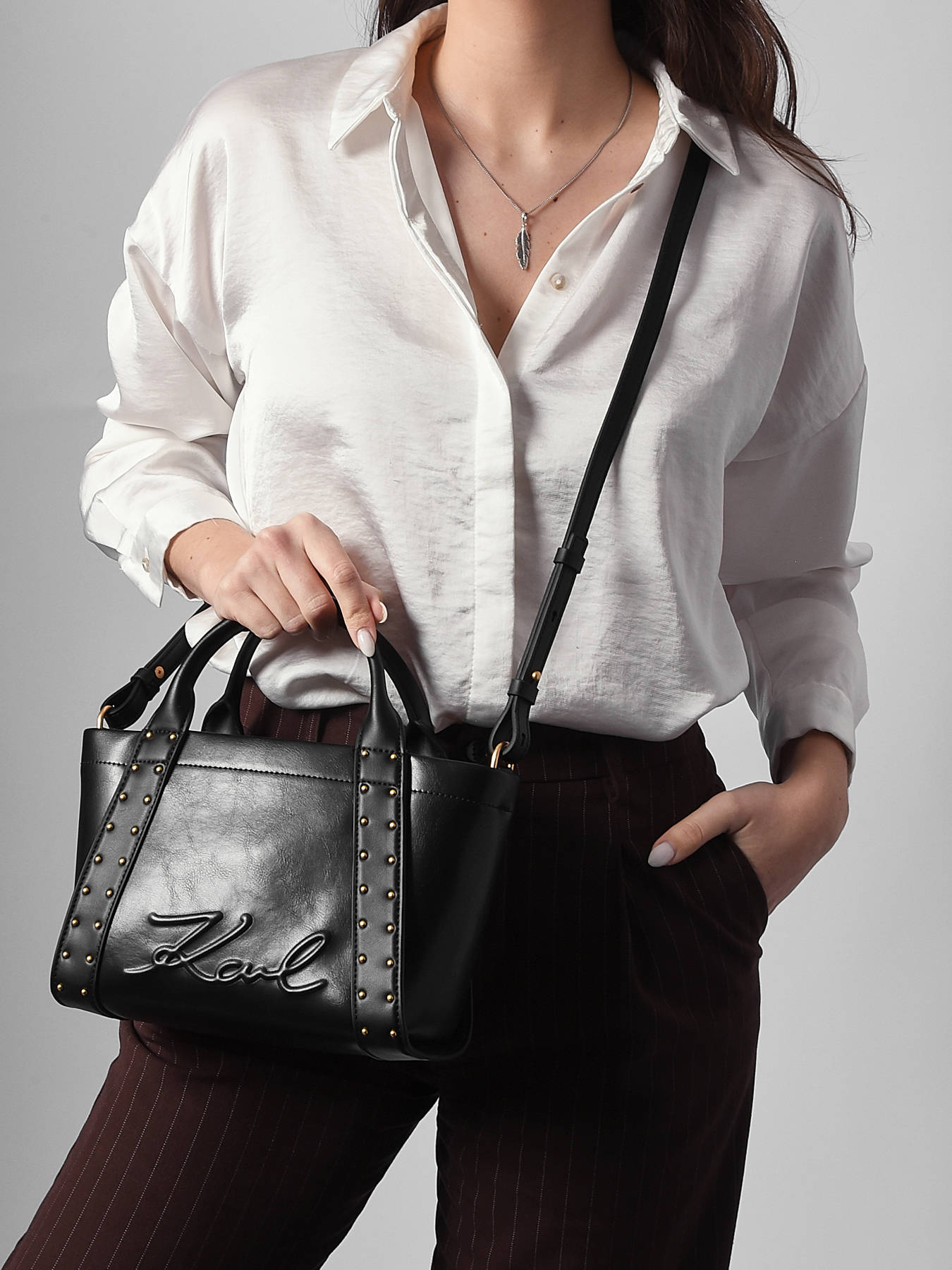 The K VILLE Karl Lagerfeld handbag, made from quality PU, combines modernity and practicality in an elegant design. Its smooth and durable exterior features a secure zip closure, ensuring the protection of your belongings. The 8 cm handle offers comfortable hand carry, while the adjustable strap allows for crossbody wear according to your style preferences, for a more casual or sophisticated look. Inside, a dedicated card slot helps organize your essentials, even in a compact format. Lightweight and functional, this bag perfectly meets the needs of a dynamic urban lifestyle while reflecting Karl Lagerfeld’s contemporary and chic aesthetic. A versatile accessory, ideal for complementing all your outfits with elegance and simplicity, on any occasion.