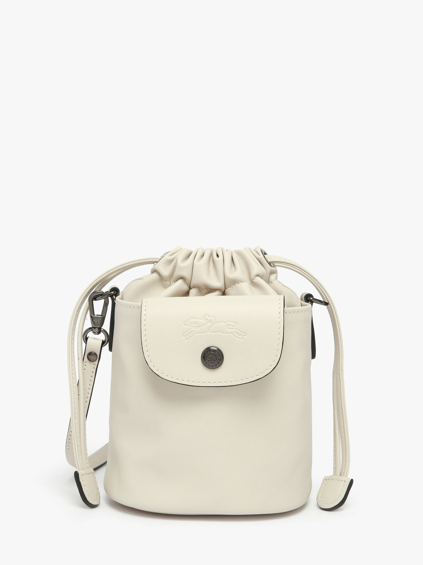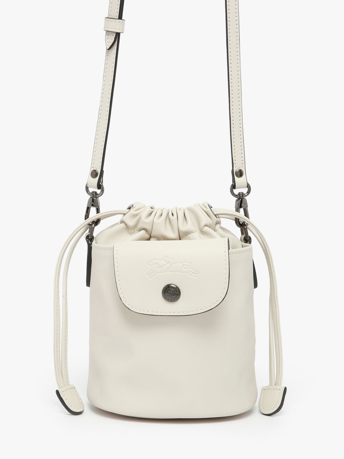 The Le Pliage Xtra XS bucket bag by Longchamp reinterprets the iconic line in a compact and functional format crafted from supple cowhide leather. Featuring a drawstring closure, a convenient front pocket, and an adjustable strap, it can be worn crossbody or over the shoulder. Its modern, urban silhouette makes it the perfect everyday companion while retaining the understated elegance that defines the Xtra line.