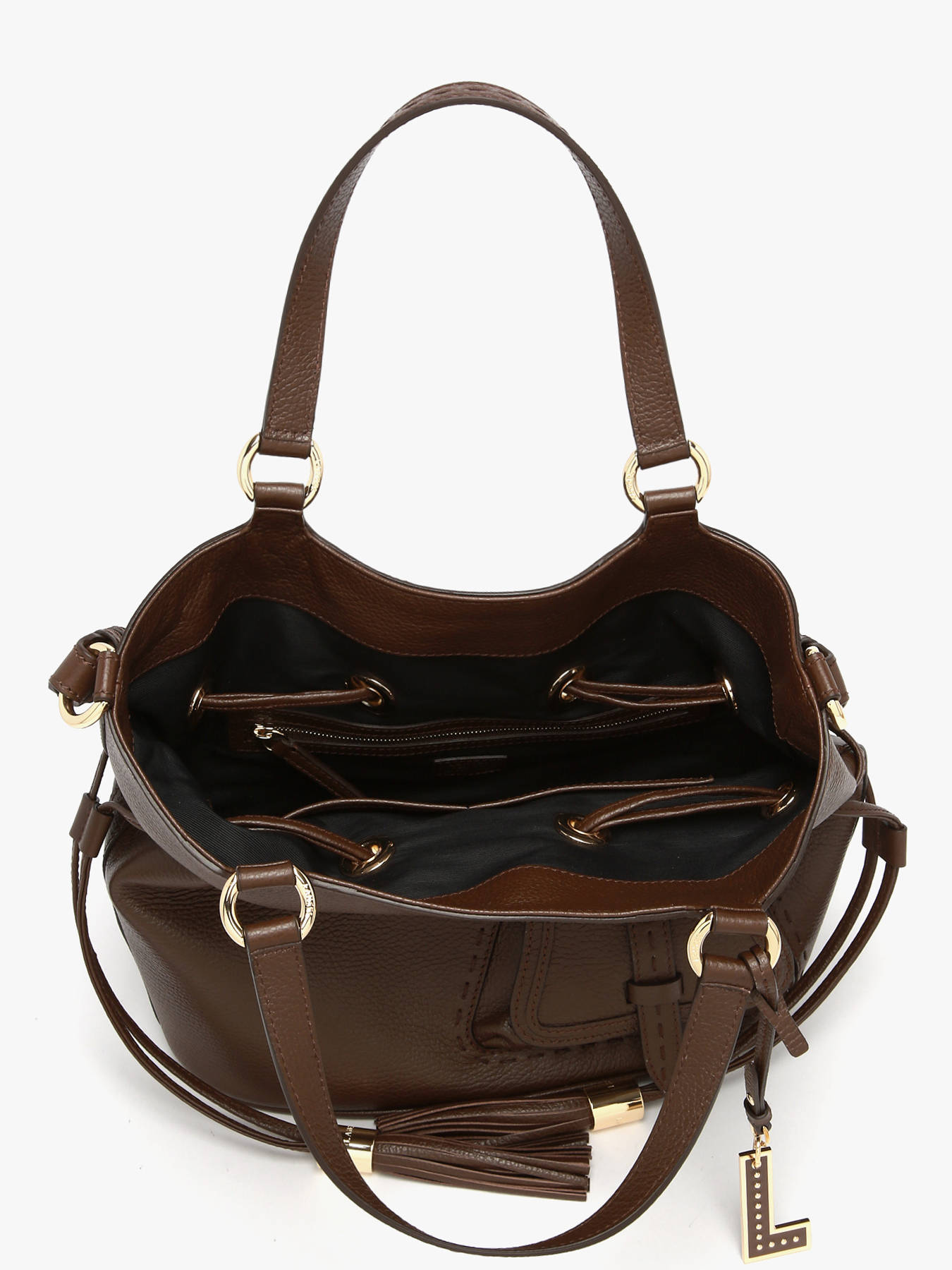 Its chic and elegant look is instantly recognisable thanks to iconic details such as the tasselled drawstring, the metallic L-shaped yoke and the flap pocket on the front.
