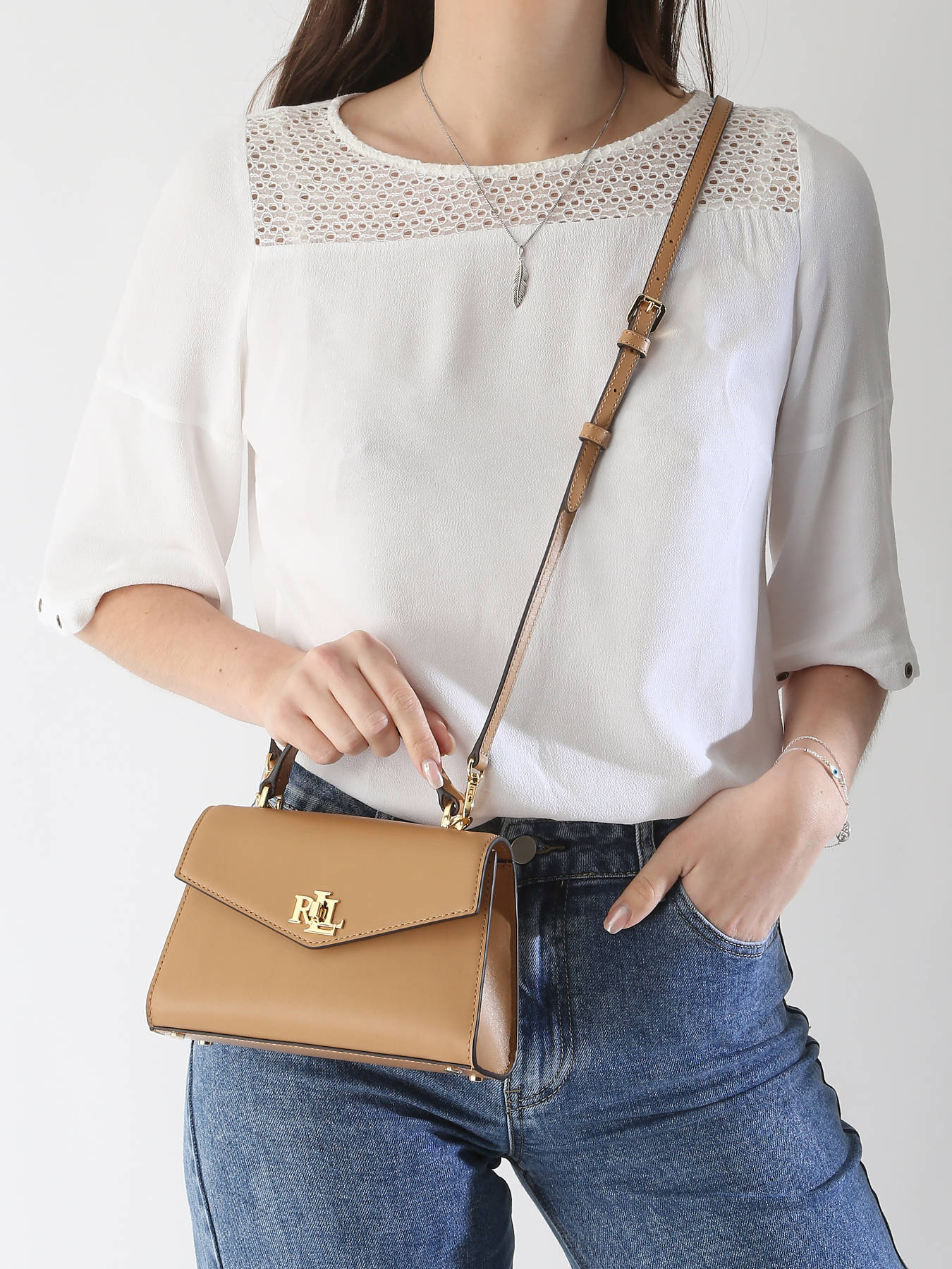 Le sac porté main Lauren Ralph Lauren en cuir de vachette est une pièce élégante et pratique. À l'extérieur, il dispose d'une poche au dos pour un accès rapide à vos petits objets. Sa fermeture à rabat avec fermoir assure sécurité et facilité d’utilisation. La bandoulière réglable et amovible permet de le porter en bandoulière ou à la main, selon vos préférences. À l'intérieur, il offre une poche simple et un compartiment unique pour organiser vos essentiels. Ce sac allie confort, style et fonctionnalité, parfait pour toutes les occasions, du quotidien aux sorties spéciales.