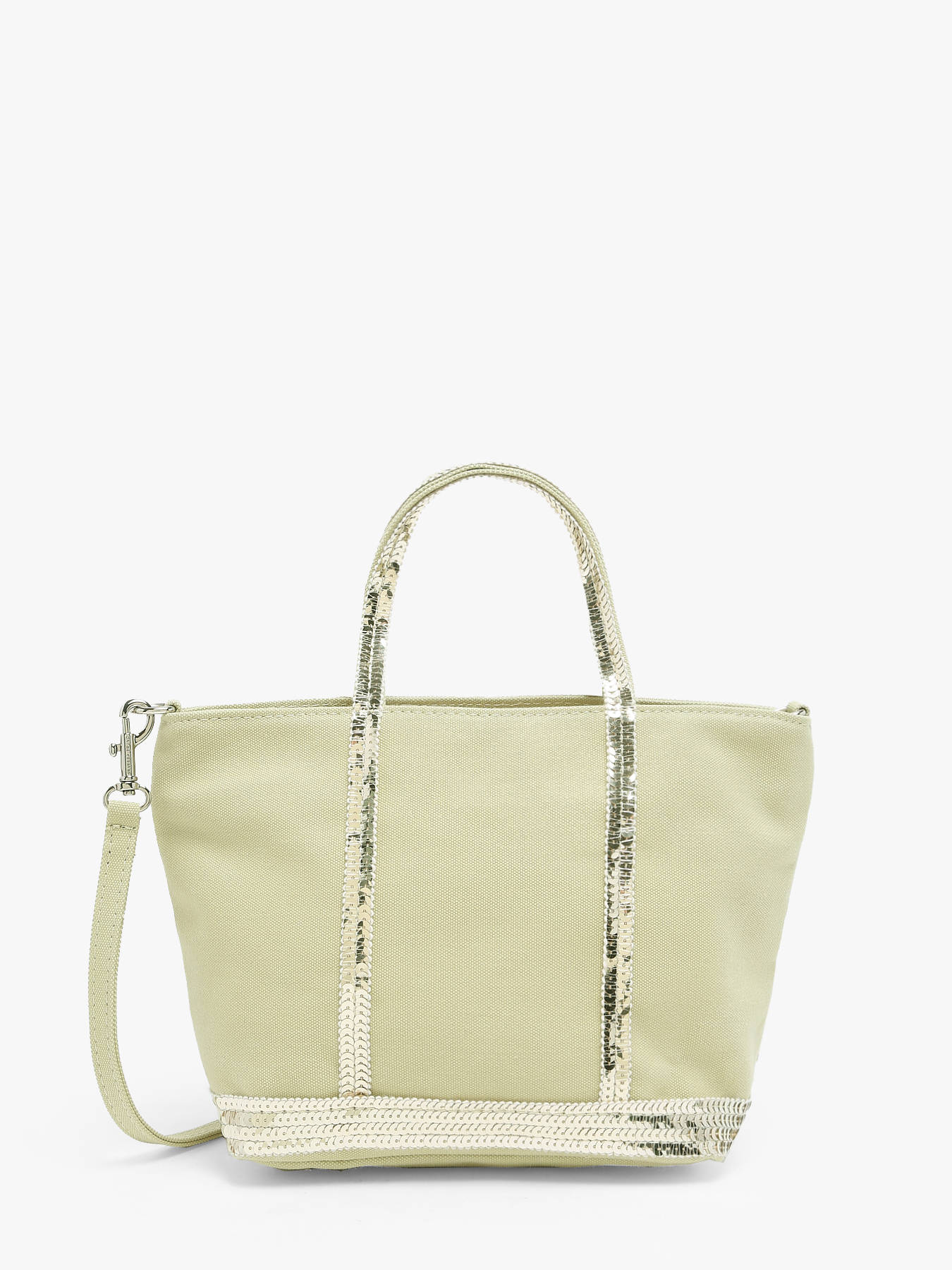 Ce sac Vanessa Bruno reprend le modèle signature de la marque française. Il est présentée ici dans une version mini. Il est réalisé dans une belle toile légère rehaussée de sequins ton sur ton. Entièrement zippé, il permet d' y glisser votre porte monnaie, téléphone et clés. Portez le en travers du corps par sa fine bandoulière amovible.