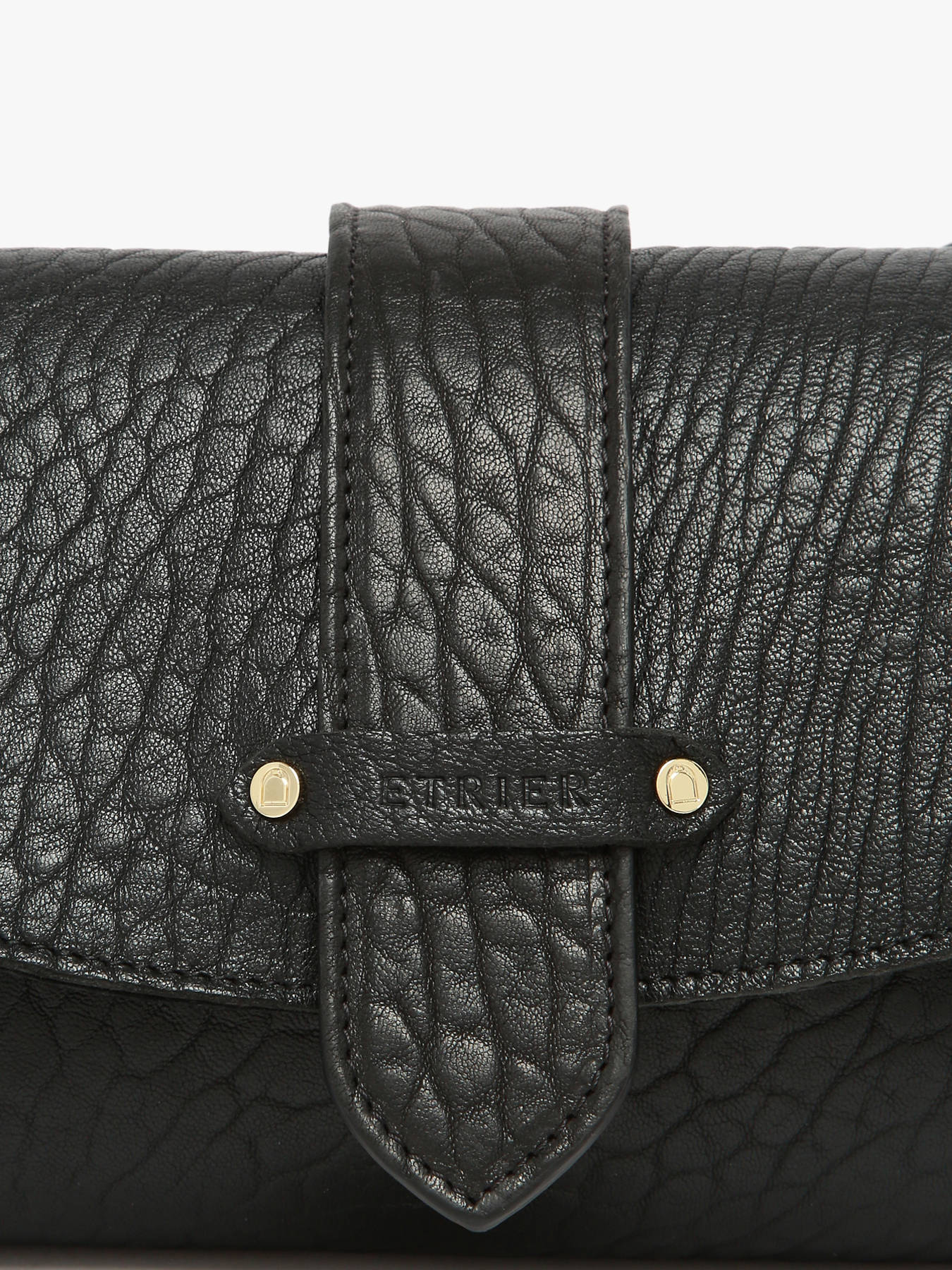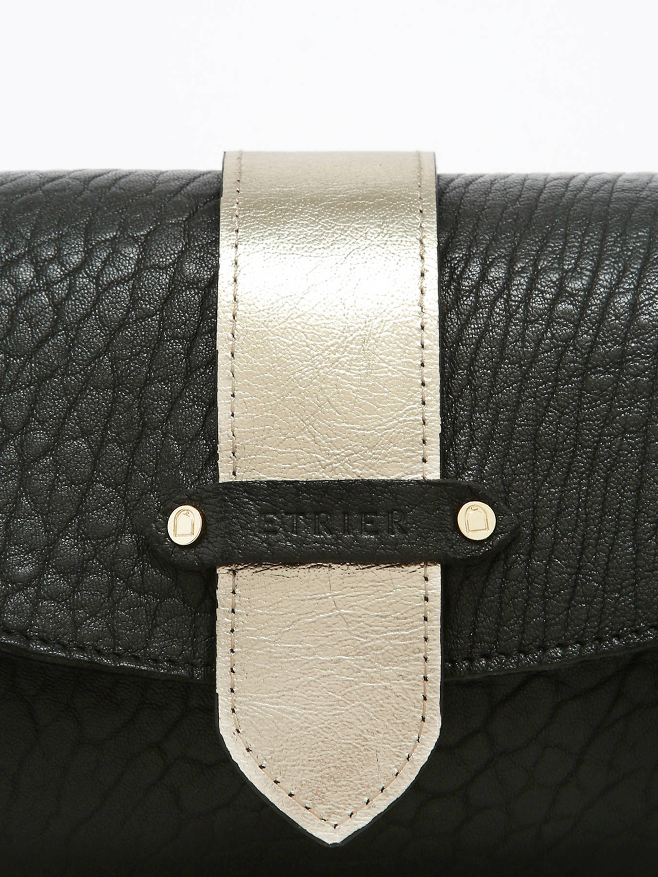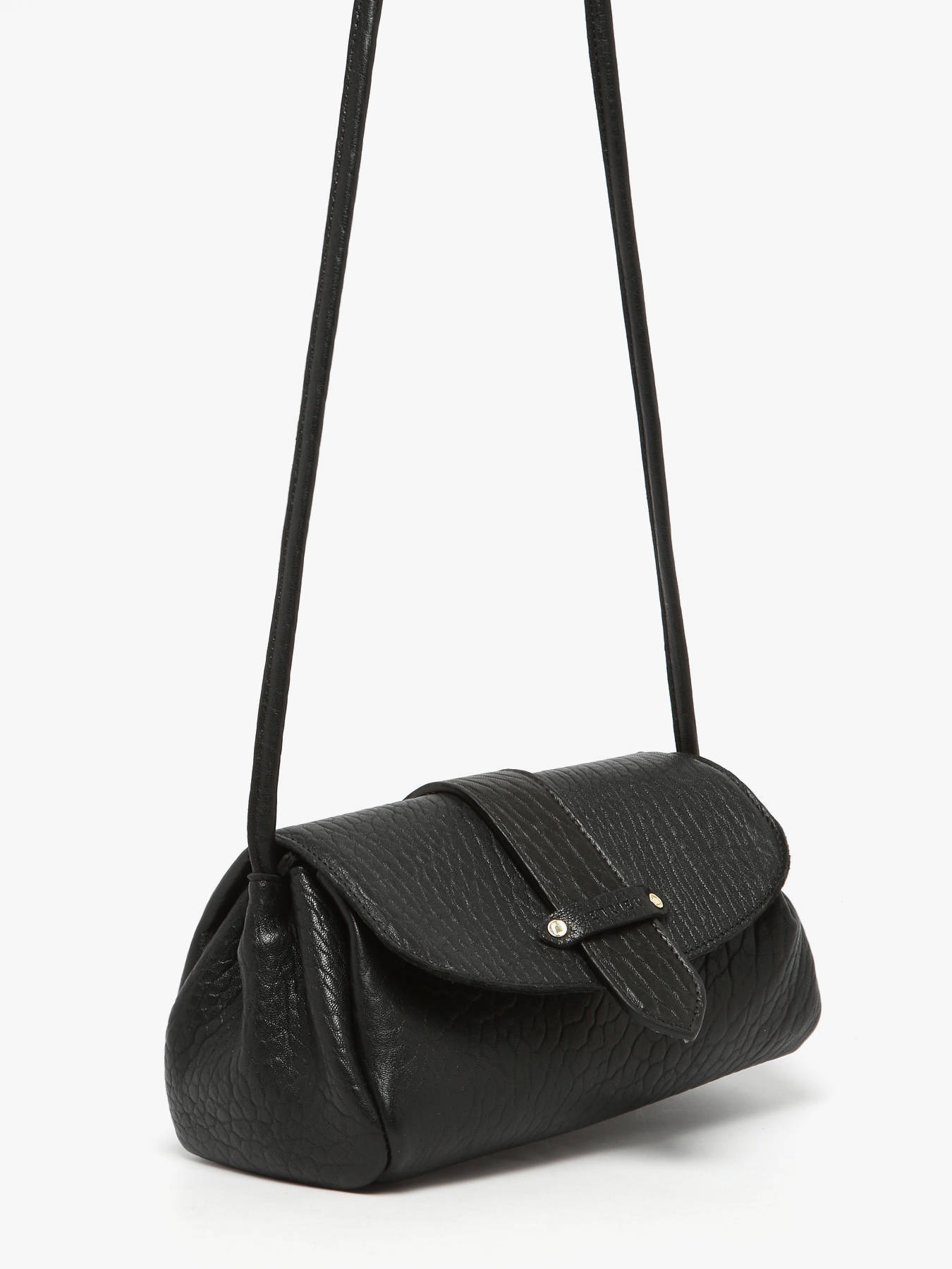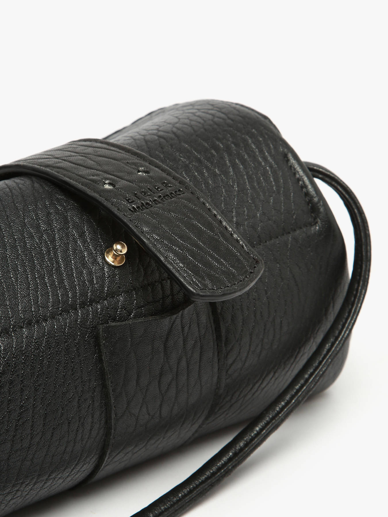 Le sac porté bandoulière AGNES par ETRIER est conçu en cuir de mouton crispé français. Ce modèle est présenté ici en taille M et se ferme par un rabat doté d'un bouton-pression aimanté. Il existe également en taille S pour celles et ceux qui souhaitent une contenance plus généreuse. Ce dernier est également agrémenté d'une languette réversible ; une face dorée et une face en cuir assortie au reste du sac, qui se fixe facilement grâce à deux boutons de col et se glisse dans une poche arrière prévue à cet effet.