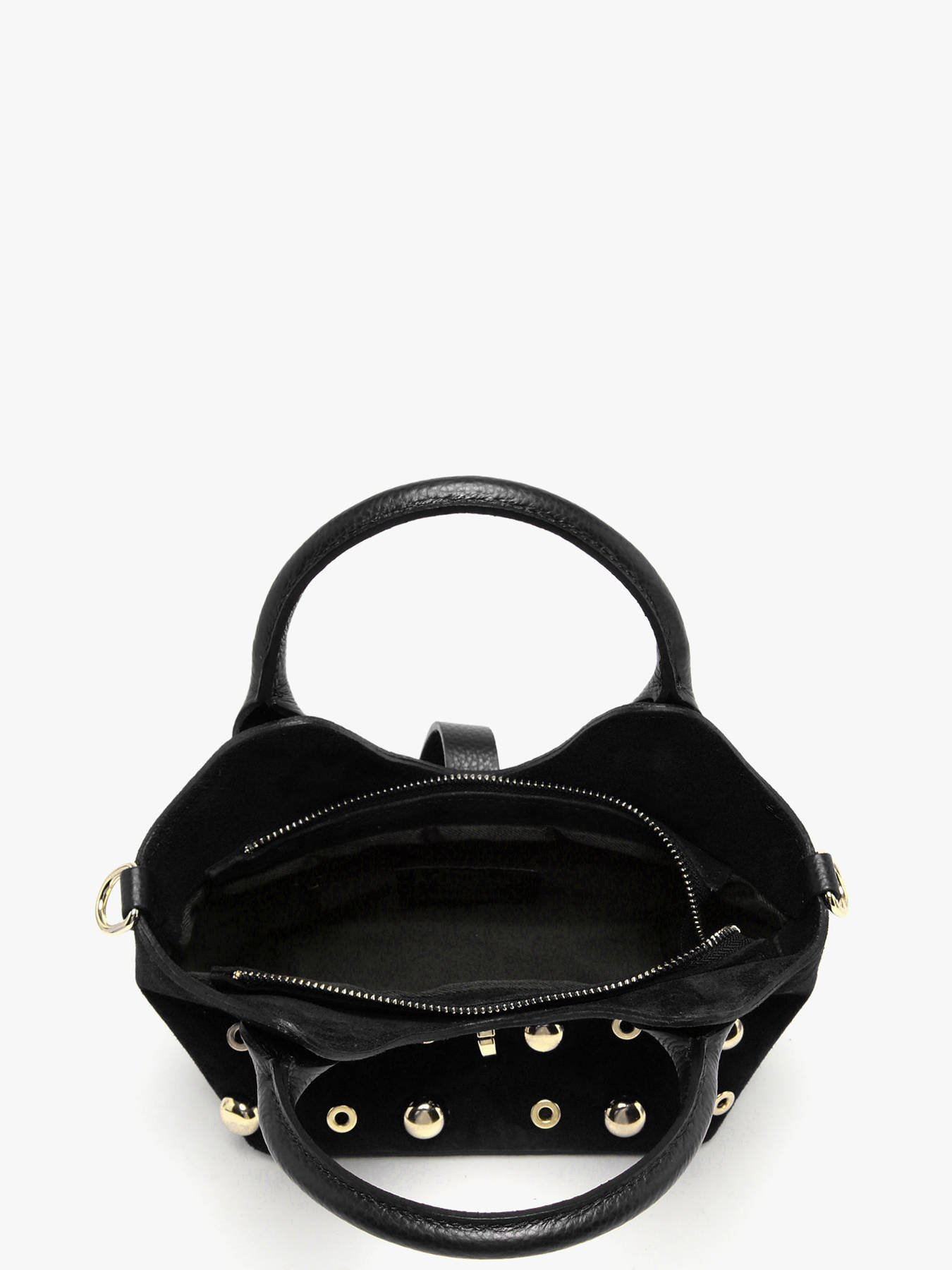 The VELVET STUDS MILANO handheld bag, crafted from cowhide leather, combines sophistication and practicality. Its elegant exterior features a combined zip, clasp, and flap closure, ensuring optimal security while adding a refined touch. The 12.5 cm handle height allows comfortable hand carrying, while the adjustable and removable shoulder strap offers a practical alternative for shoulder wear as desired. Inside, a single compartment and a zip pocket provide simple yet effective organization for your essentials. This bag embodies a modern and timeless style, perfect for accompanying the active woman in her daily life with elegance and versatility.