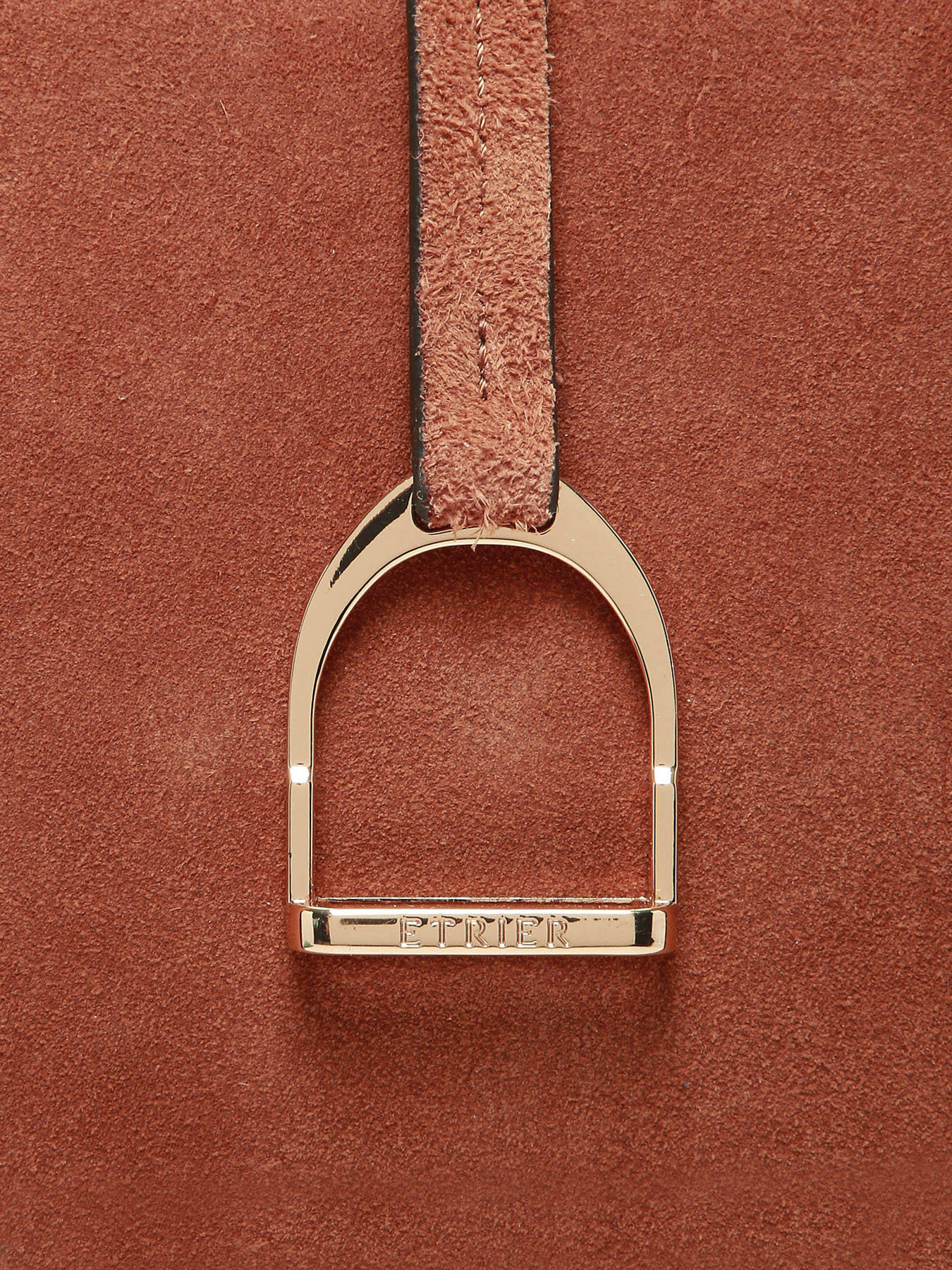 The ETRIER shoulder bag from the ALTESSE SUEDE line is crafted from soft velvety leather. It features a tote shape ideal for everyday use. It closes with a zipper and is adorned with a stirrup-shaped pendant, the elegant signature of the House. Inside, a spacious compartment includes two slip pockets and a zipped pocket for optimal organization. It also offers a generous size that can accommodate A4 documents as well as a laptop up to 13 inches. The back of the bag is made of grained leather for enhanced durability. The ALTESSE SUEDE line revisits the ETRIER icon with a warm texture and a ""Highlander Cowboy"" spirit, blending refinement and character.