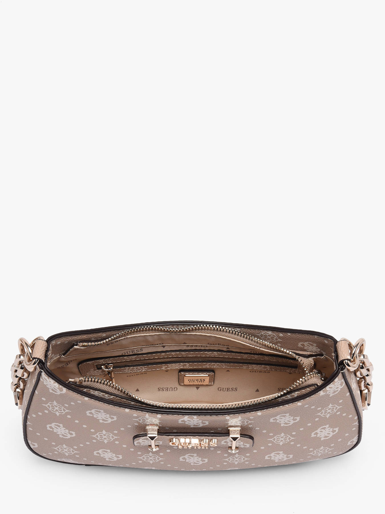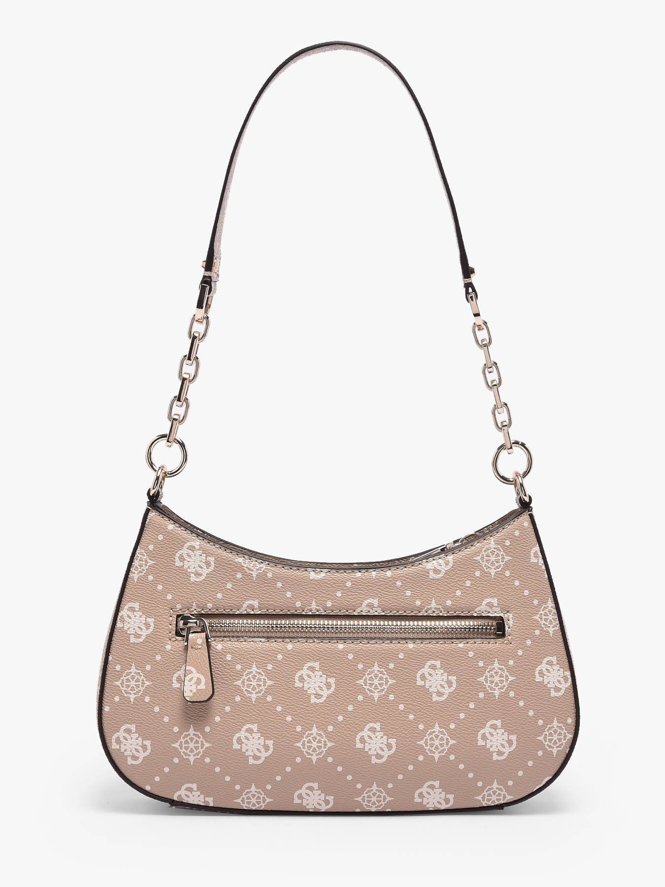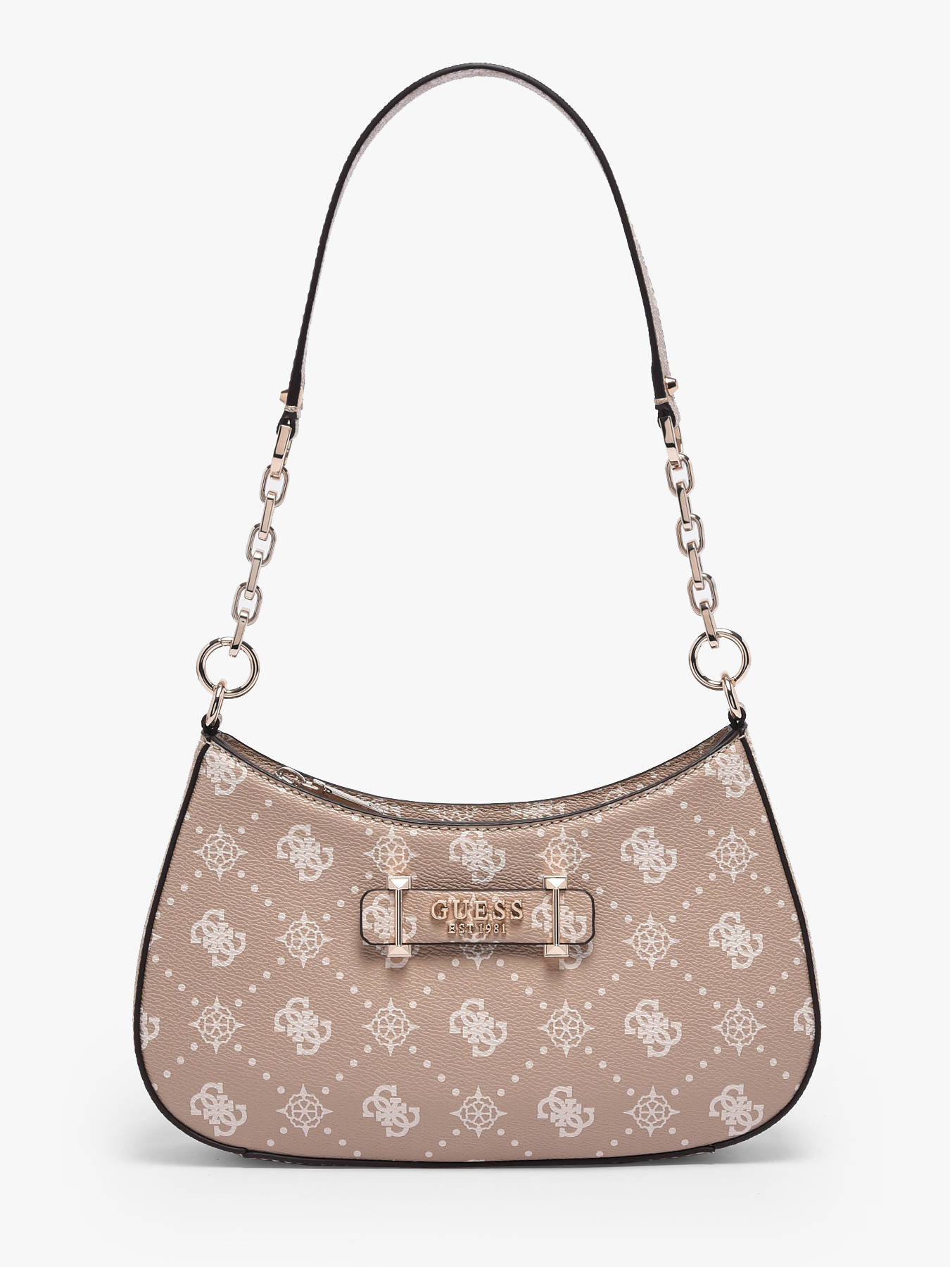 The CARRIE LOGO GUESS shoulder bag, crafted from high-quality P.U., combines contemporary elegance and practicality to complement your daily outfits. Its refined exterior features a back pocket and a secure zip closure, providing easy and protected access to your belongings. The 30 cm handle allows comfortable shoulder wear, perfect for everyday use. Inside, one main compartment is complemented by a zip pocket and three card slots, ensuring optimal organization of your essentials and small items. Compact and lightweight, this bag suits all occasions, from everyday errands to more dressed-up outings, while adding a modern and chic touch to your style. The CARRIE LOGO GUESS bag is an essential accessory that merges quality, functionality, and refined design, blending comfort and elegance to elevate your looks with sophistication and modernity.