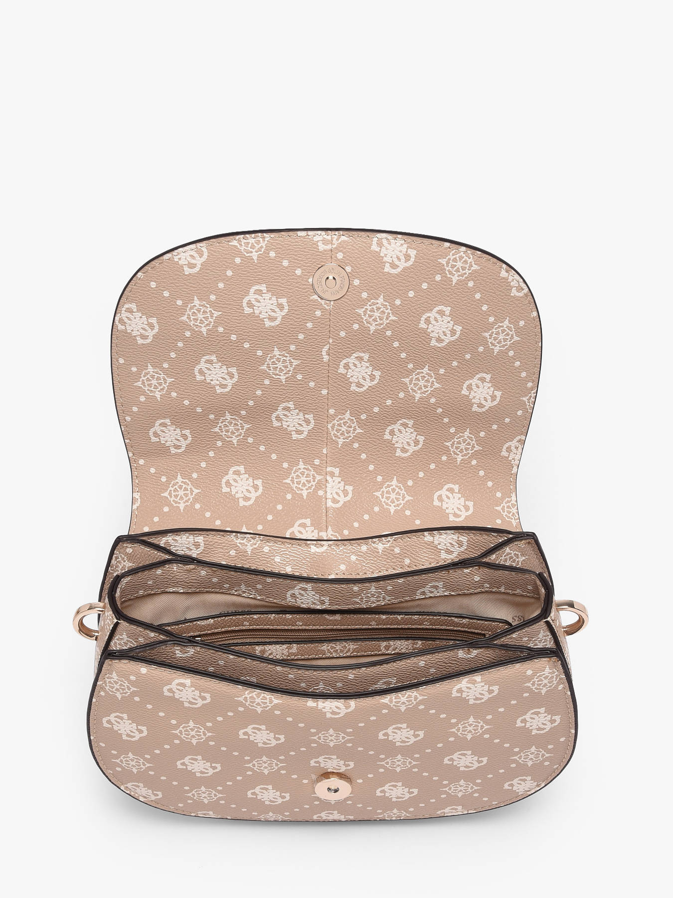 The CARRIE LOGO GUESS shoulder bag, crafted from high-quality P.U., combines modern elegance and practicality to elevate your daily outfits. Its refined exterior features a back pocket and a flap with secure magnetic closure, providing easy and protected access to your belongings. The 31 cm handle allows comfortable shoulder wear, while the adjustable and removable strap offers versatile crossbody use. Inside, three spacious compartments are complemented by a zip pocket and six card slots, ensuring optimal organization of your essentials and small items. Compact and lightweight, this bag suits all occasions, from everyday errands to more dressed-up outings, while adding a contemporary and chic touch to your style. The CARRIE LOGO GUESS bag is an essential accessory that merges quality, functionality, and refined design, blending comfort and elegance to enhance your looks.