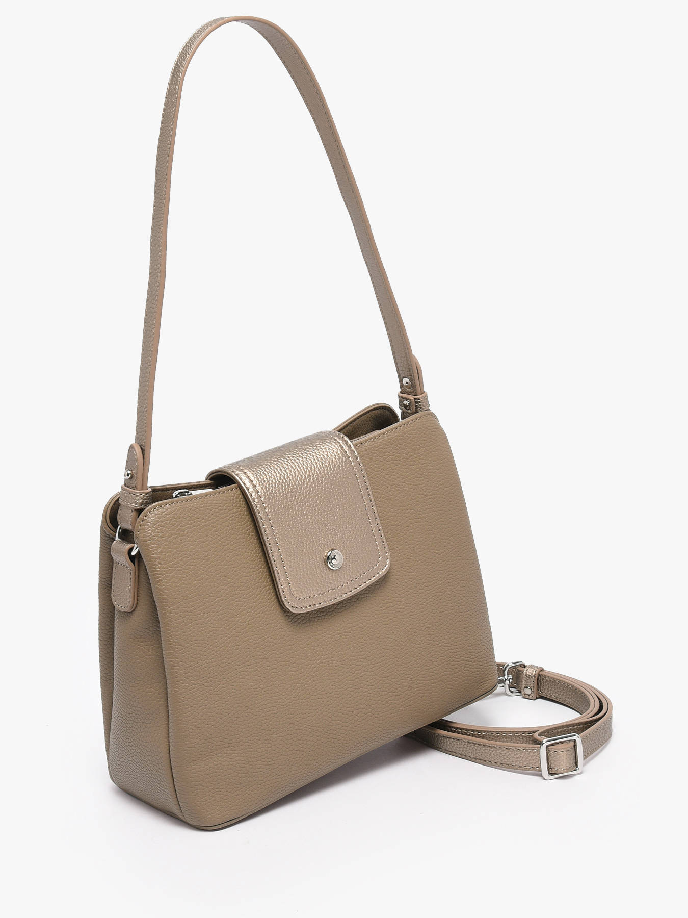 The MAYA HEXAGONA shoulder bag, made of synthetic material, combines elegance and functionality for versatile use. Its zip closure paired with a flap ensures security and style, while the adjustable and removable shoulder strap gives you the freedom to carry it on the shoulder or crossbody according to your preference. With a 25 cm handle, it guarantees optimal comfort for everyday wear. Inside, the bag features three well-designed compartments, two simple pockets, and one zipped pocket, providing organized storage for your essentials. A back pocket offers quick access to your must-have items. Lightweight and durable, this bag perfectly suits all occasions, from the office to city outings, with a modern and refined touch that complements any outfit.