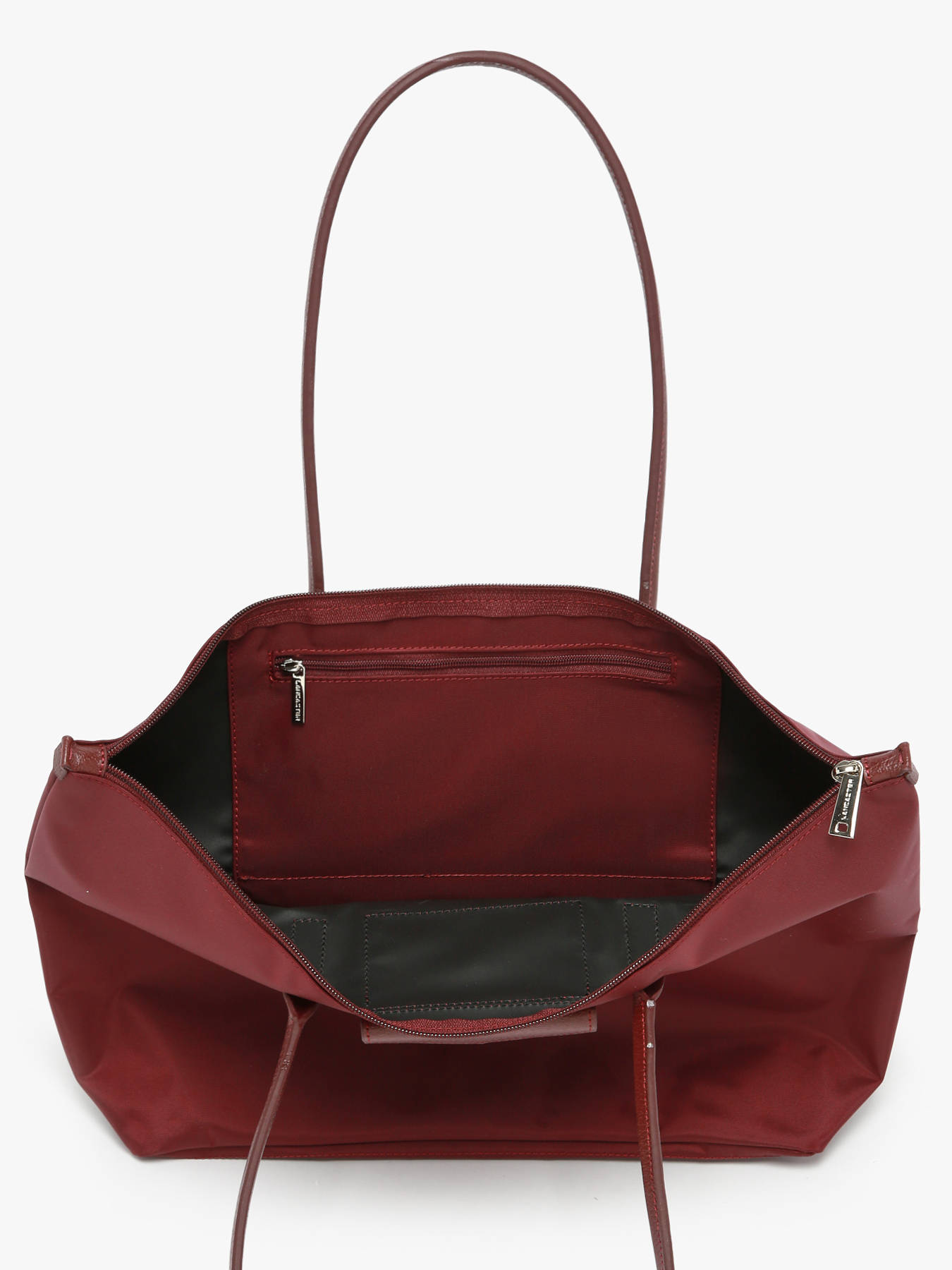 This Lancaster handbag closes with a zip.