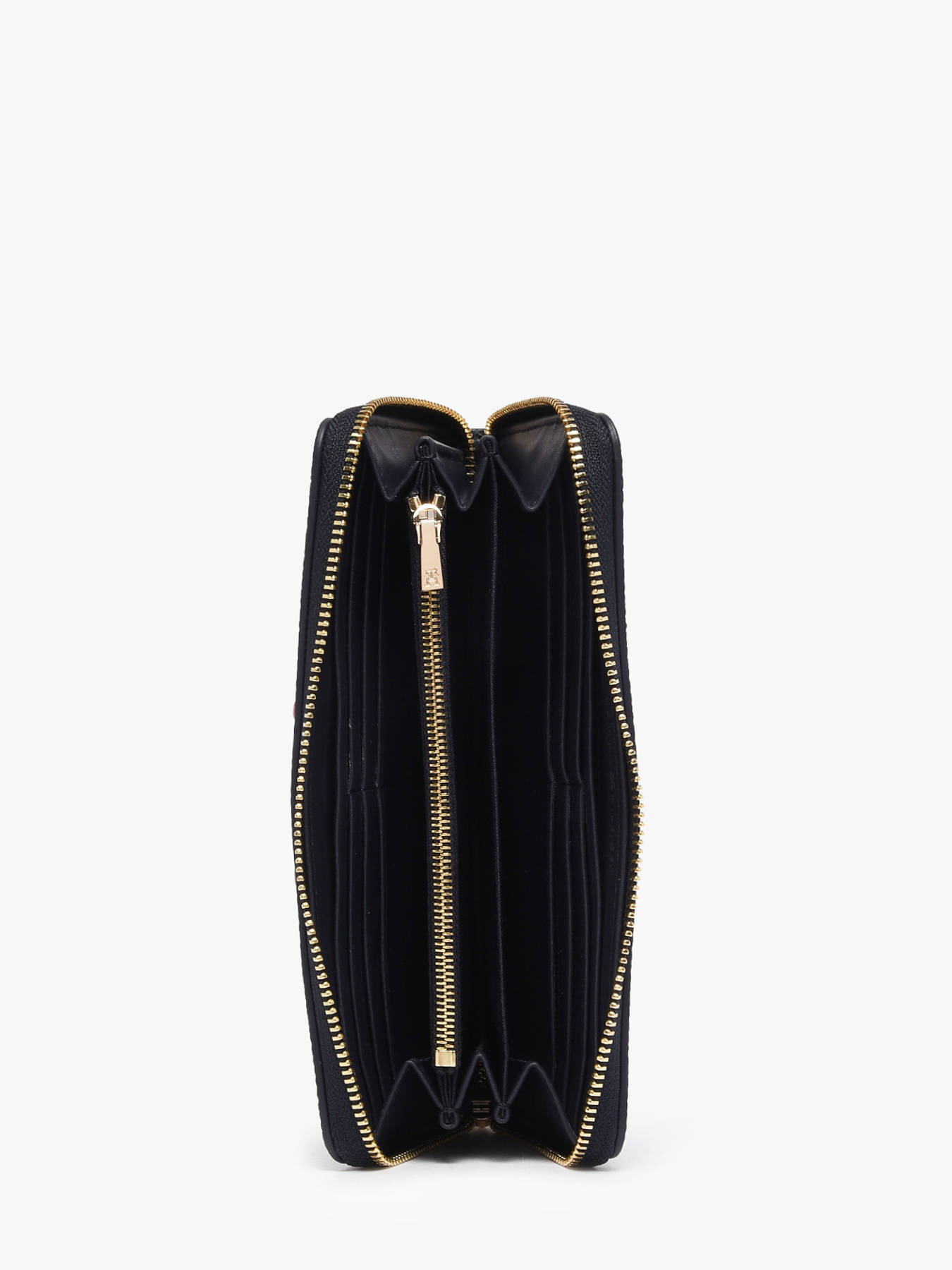 The Tommy Hilfiger wallet, made from recycled P.E.T, combines elegance and sustainability. Its sleek exterior features a sturdy zip closure, ensuring optimal protection for your belongings. Inside, it offers two simple pockets to organize small items, twelve card slots for comprehensive storage, a dedicated bill compartment, and an additional zippered pocket for coins or important documents. This wallet is perfect for those seeking a practical, spacious, and eco-friendly accessory with a modern and sophisticated style.