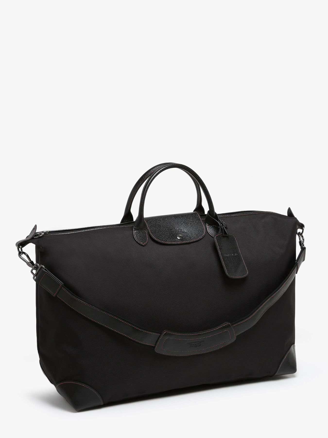 The Boxford travel bag from Longchamp, crafted from polyester trimmed with leather, epitomizes discreet elegance. Designed for use as cabin luggage, it features a removable shoulder strap for versatile carrying options - either over the shoulder or by hand, making it ideal for various travel scenarios. Longchamp's iconic Boxford line is characterized by its understated yet distinctive style. Bags for men, business bags, and luggage in this collection proudly display the Longchamp rectangular logo embossed in leather, complemented by contrasting stitching that highlights the refined elegance of each piece. Made with dual-tone canvas and trimmed with Russian leather, the Boxford bag offers a luxurious, textured relief effect, showcasing the craftsmanship synonymous with Longchamp. Perfect for a weekend getaway, this travel bag includes a flat pocket inside for convenient organization of your essentials. Whether for a business trip or a personal retreat, the Boxford bag combines functionality and aesthetics, meeting the needs of modern travelers seeking elegance and practicality.