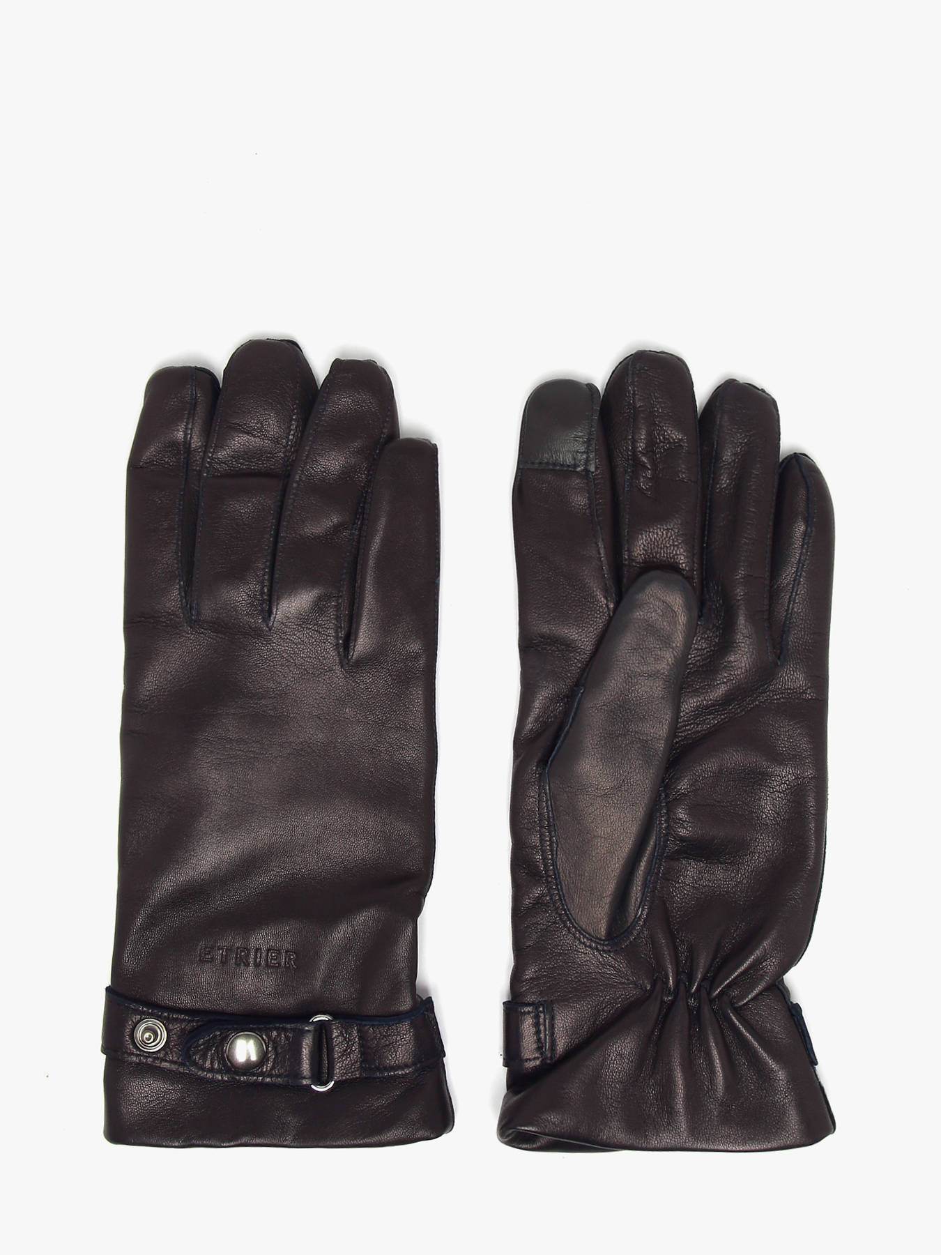 Les gants Etrier fabriqués en Italie sont réalisés en cuir d’agneau résistant avec pouce et index tactiles pour une utilisation fluide du smartphone. L’intérieur en laine garantit chaleur et confort durable.