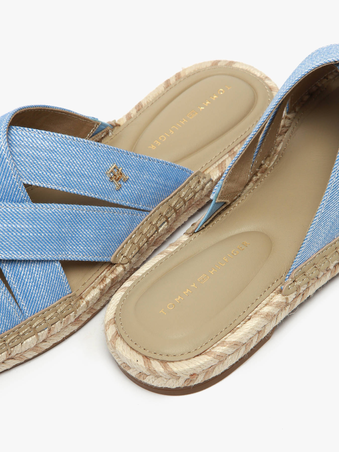 Mettez à jour votre collection de chaussures estivales avec ces mules espadrilles plates CHAMBRAY CROSSOVER de TOMMY HILFIGER. Conçues avec une tige en chambray de coton, elles offrent un aspect naturel et texturé, parfait pour les journées ensoleillées. Le détail en corde sur la semelle intermédiaire et la semelle extérieure en caoutchouc thermoplastique assurent confort et adhérence. La doublure en cuir garantit un confort optimal à chaque pas. Les brides croisées en chambray ajoutent une touche moderne et élégante, tandis que la plaque monogramme TH sur le côté et le branding TOMMY HILFIGER renforcent le style emblématique de la marque. Disponibles en marron clair ou bleu clair, ces mules sont idéales pour compléter vos looks estivaux avec une note de sophistication décontractée.