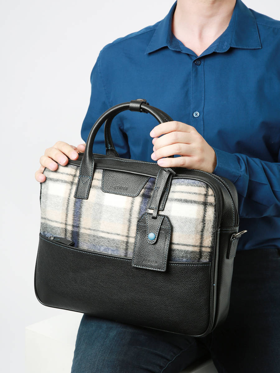 Ce porte-document moderne réalisé en flanelle imprimé Tartan est la pièce mode qu’il vous faut cette saison. Doté de deux compartiments, il sera parfait pour transporter vos documents, ainsi qu’un PC 15 pouces. Son coloris neutre lui offre une allure chic et intemporelle. Garni de cuir, c’est un modèle de qualité, garant de notre savoir-faire maroquinier.
