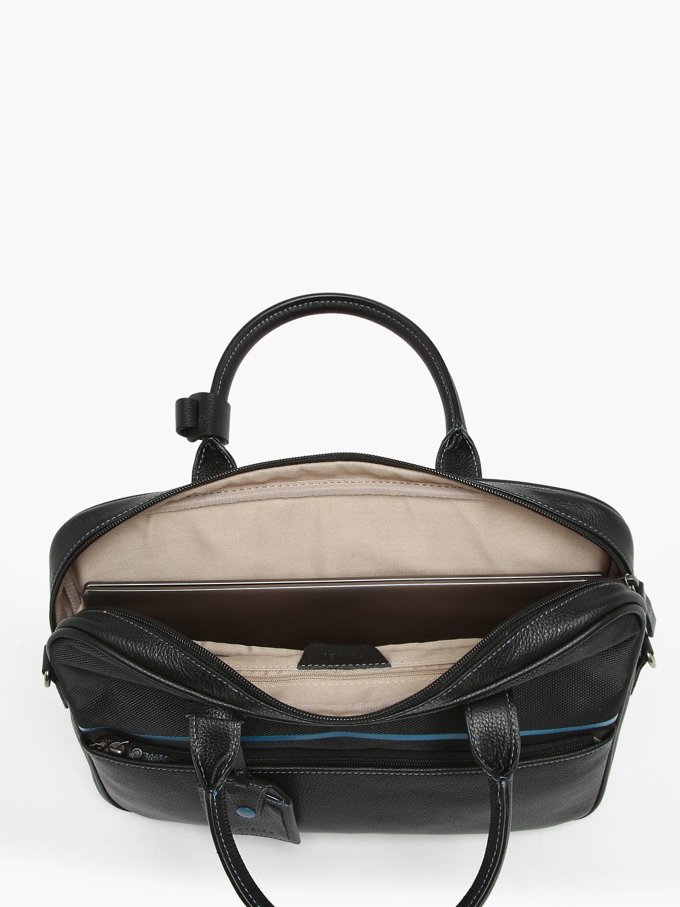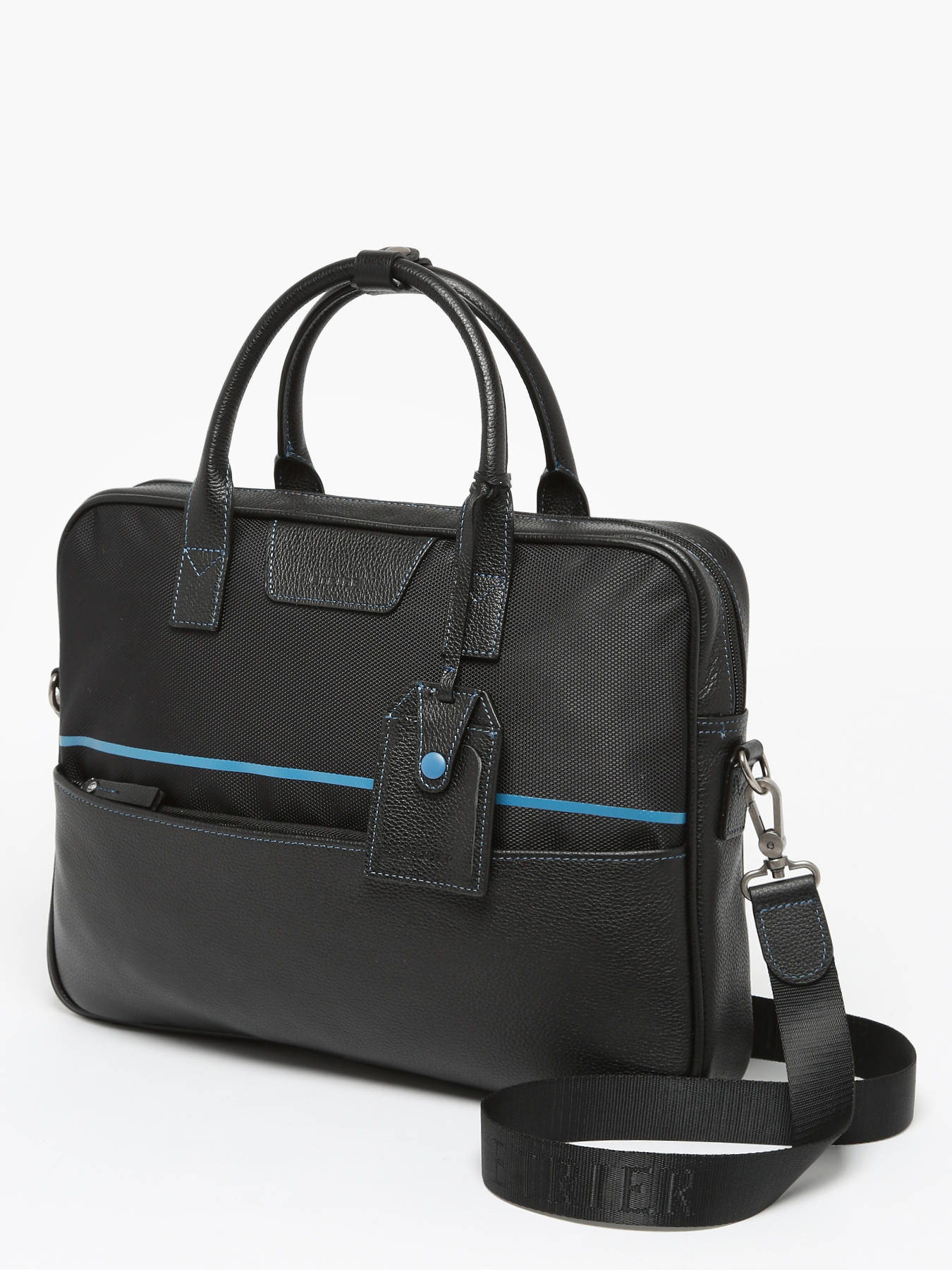Porte document en nylon garni cuir de vachette. Dôté d'un compartiment, et d'une capacité pouvant accueillir un PC 14 pouces, ce modèle de la ligne Light Sport présente des codes urbains et modernes. Orné d'un détail coloré très graphique, c'est une ligne élégante et discrète à porter tous les jours.