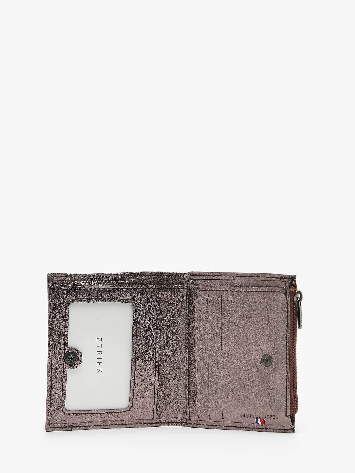 Rien de tel qu'un petit porte monnaie en cuir pour durer dans le temps. La marque Etrier vous propose donc cette saison son porte-monnaie Etincelle Irisé en cuir véritable et de qualité et doté de trois fentes pour cartes et une poche transparente ainsi que deux poches simples et une poche zippée pour votre monnaie. Il se ferme à l'aide d'une pression. Idéal à glisser dans tous les sacs grâce à son petit format, il vous suivra longtemps.