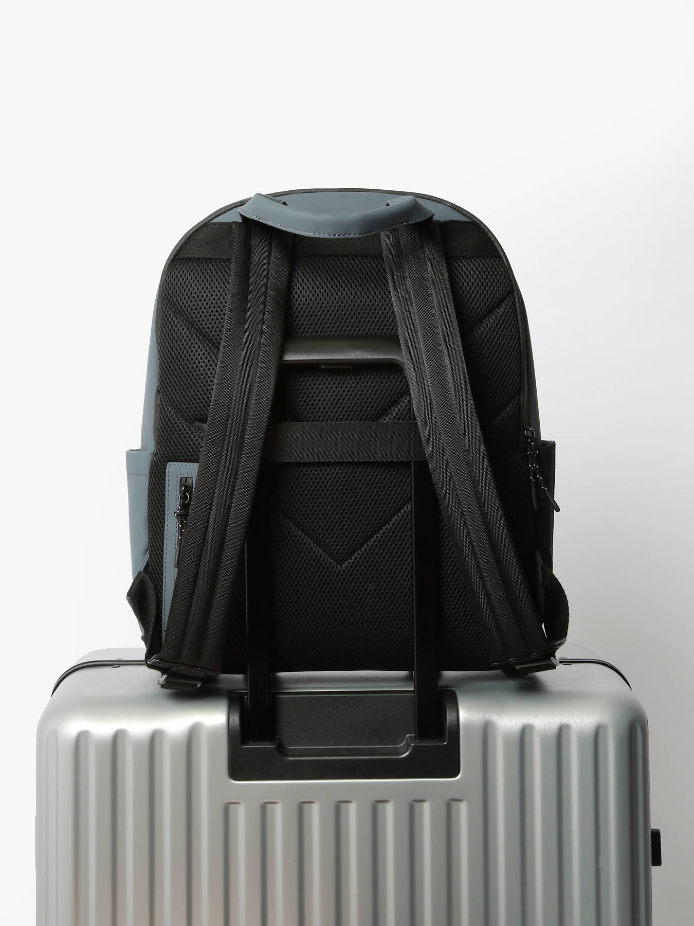 Ce sac à dos business de la ligne Impulsion, en polyuréthane imperméable, combine élégance et praticité. Il arbore un logo en relief ton sur ton et dispose d’un passant de poignée télescopique. Il comprend deux poches avant, une poche arrière, et à l’intérieur, il est divisé en deux compartiments avec trois poches simples, une poche éclair et une poche renforcée pour un ordinateur 15"".