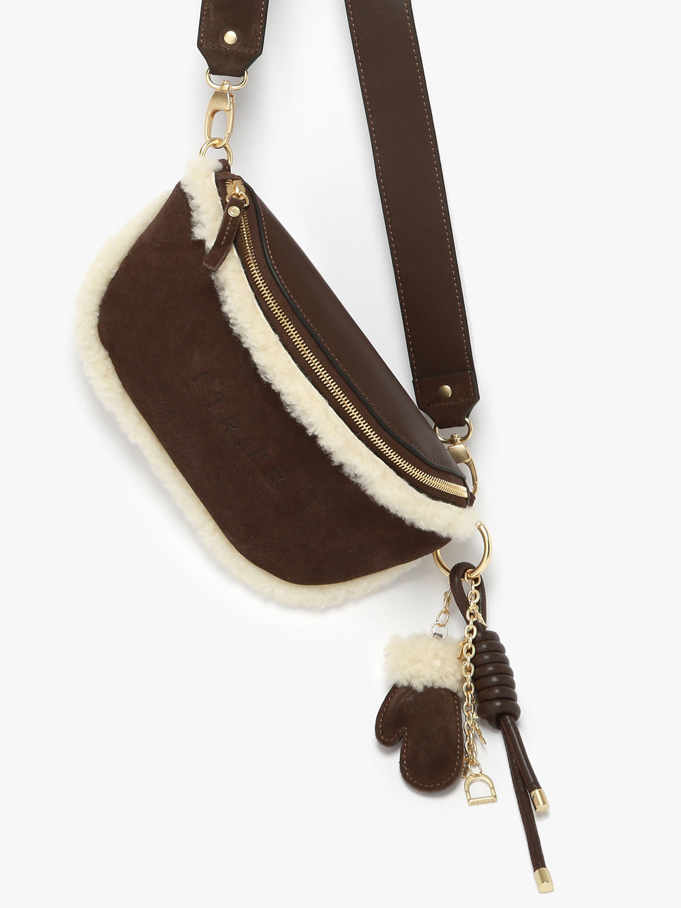 Le sac banane ETRIER de la ligne ALPIN est réalisé en cuir de vachette velours, avec un dos en cuir lisse pour une meilleure résistance. Il se ferme par un zip, idéal pour un usage quotidien. A l’intérieur, une poche simple et une poche zippée permettent de ranger vos essentiels. Sa bandoulière réglable et amovible permet un porté ajusté selon vos envies, à la taille ou en travers du corps. Un accessoire à l’élégance fonctionnelle et à l’allure affirmée. Ce modèle est orné d’un porte-clés bijou reprenant les symboles de la ligne ALPIN : moufle, étrier et lettres ETRIER, soulignés d’une finition en mouton pour une touche chaleureuse.