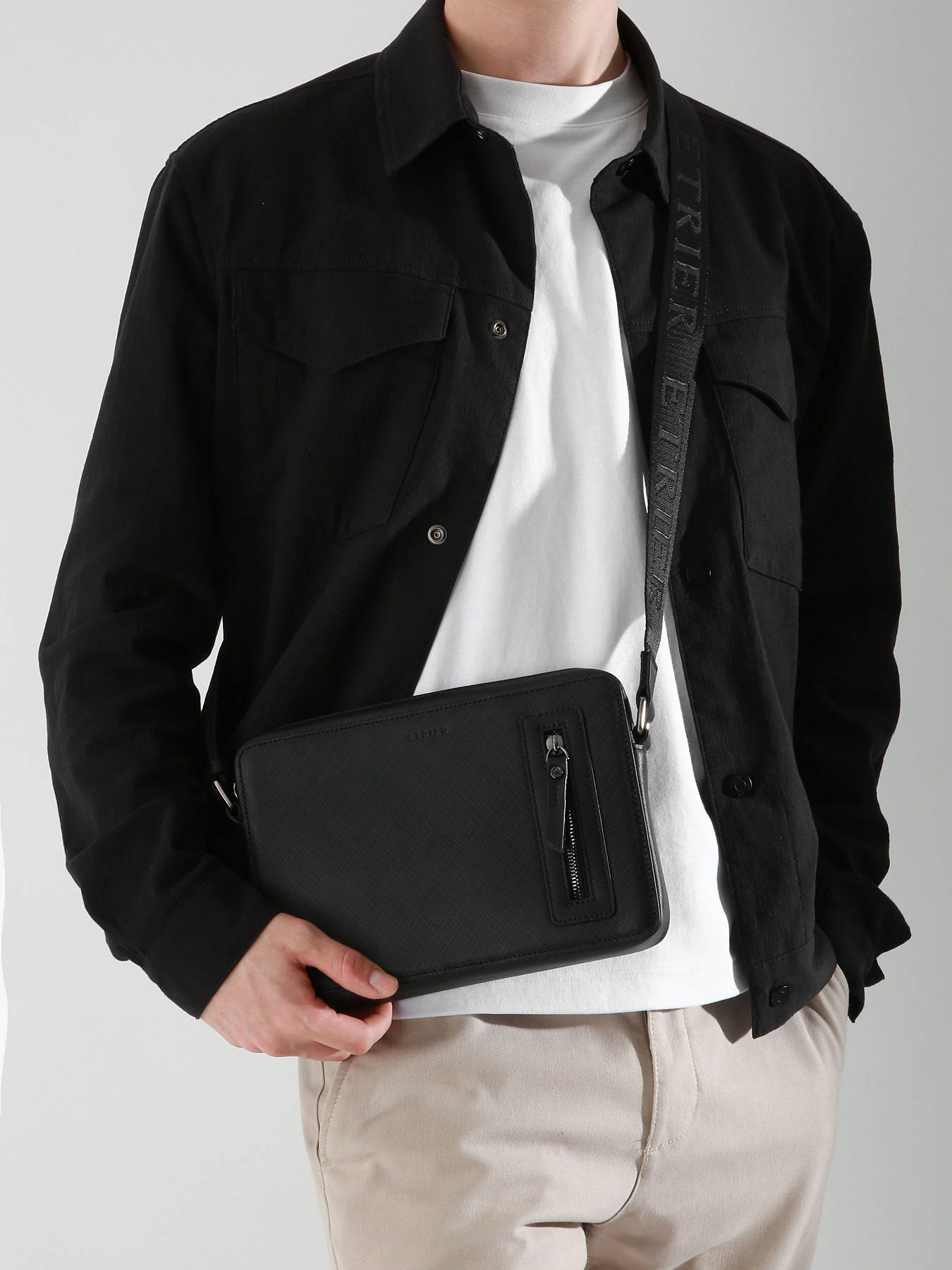 Ce sac bandoulière de la ligne Flèche, en cuir texturé, allie élégance et praticité. Il dispose d'une poche avant pour un accès facile à vos essentiels. À l’intérieur, il comporte une poche simple et une poche éclair pour organiser vos objets de manière optimale.