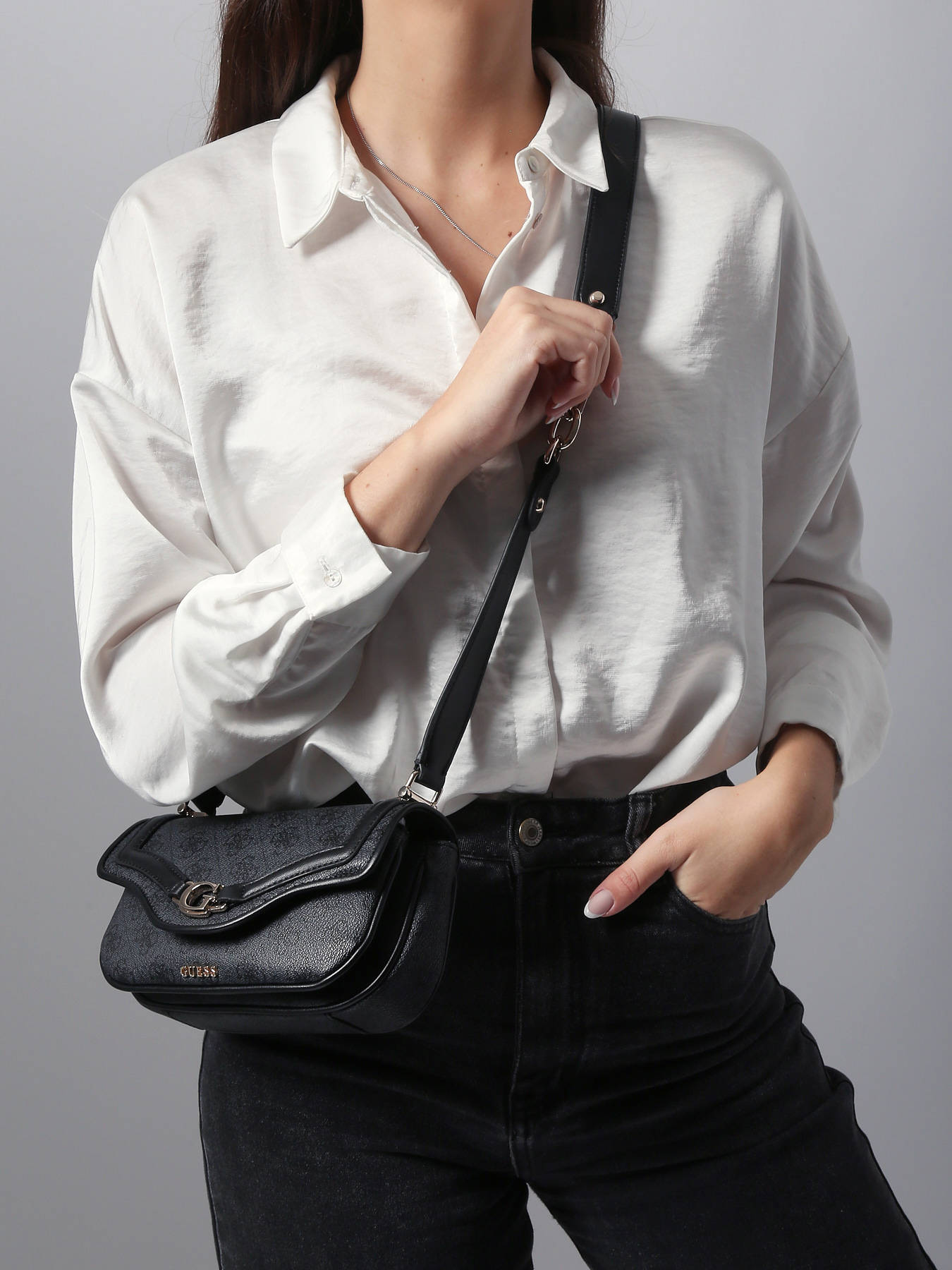 Le sac porté épaule Dea de Guess, réalisé en toile enduite résistante, allie praticité et style contemporain pour accompagner vos journées urbaines avec élégance. Sa fermeture aimantée sécurise vos effets personnels tout en offrant un accès rapide à vos essentiels. Sa grande anse de 45 cm permet un porté confortable à l’épaule, idéal pour un usage quotidien. L’intérieur se compose de deux compartiments et de trois emplacements pour cartes bancaires, facilitant l’organisation de votre portefeuille, téléphone et autres indispensables avec style et efficacité. Compact mais spacieux, ce sac séduit par ses lignes modernes et sa finition soignée, apportant une touche chic et pratique à toutes vos tenues. Le Dea devient un incontournable pour celles qui recherchent un accessoire fonctionnel, tendance et élégant, capable de sublimer un look casual ou citadin tout en restant ultra-pratique au quotidien.
