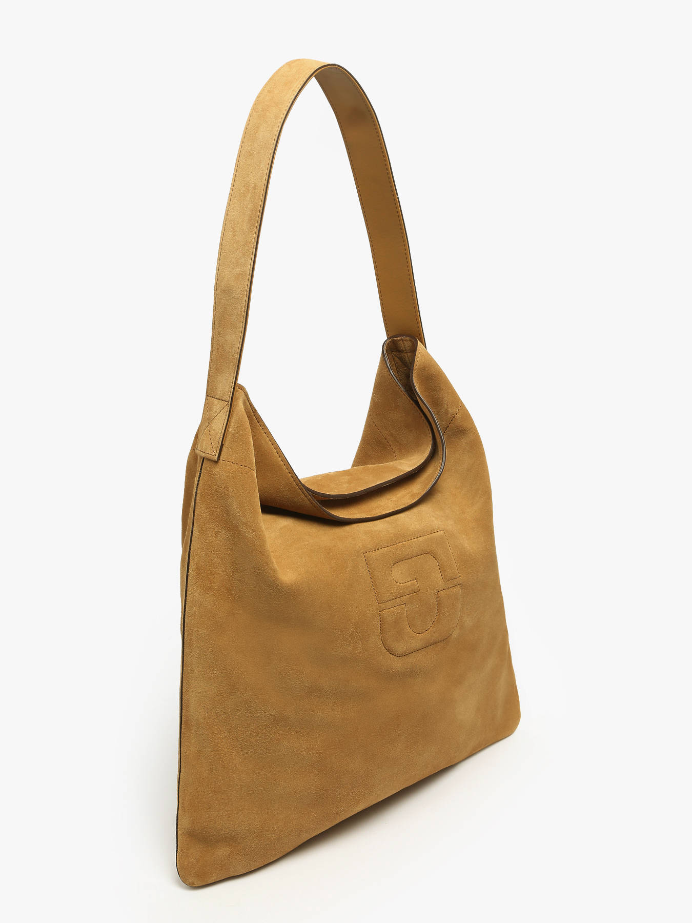 Sac porté épaule embossed emblem aspect daim