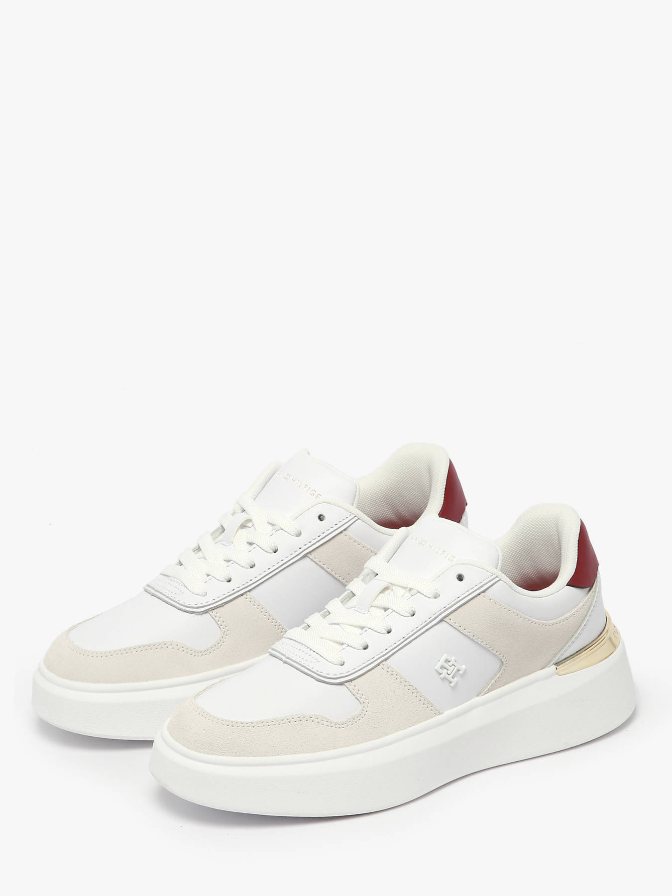 Les sneakers TH FASHION COURT MIX SNEAKER de la marque TOMMY HILFIGER pour femme allient style moderne et confort au quotidien. Conçues avec un dessus en cuir de qualité, elles offrent une allure élégante et raffinée, idéale pour compléter vos tenues urbaines ou décontractées. La fermeture à lacets permet un ajustement précis et un maintien optimal, tandis que la doublure et la semelle intérieure en textile assurent douceur, respirabilité et confort prolongé. Polyvalentes et tendance, ces sneakers se marient parfaitement avec un jean, une jupe ou un pantalon casual, reflétant l’esthétique emblématique de TOMMY HILFIGER : design soigné, qualité des matériaux et style affirmé pour une allure féminine, contemporaine et élégante à chaque pas.