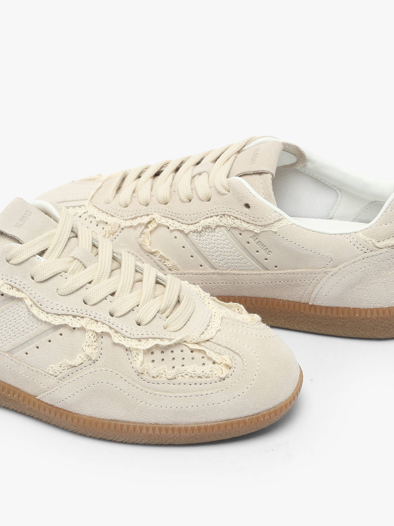 Les sneakers Tb.490 Crochet Cream Leather sont un modèle iconique de la marque, alliant douceur et romance. Confectionnées en daim crème avec des bordures en crochet délicates, elles apportent une touche élégante à un style urbain classique. Leur silhouette basse repose sur des semelles en caoutchouc, assurant confort et adhérence. Les coutures apparentes et le logo embossé sur la languette et les côtés ajoutent une finition raffinée. Pour un look simple, optez pour les lacets classiques, ou pour une touche plus romantique, vous pouvez les remplacer par des rubans, les deux étant inclus. Conçues à Barcelone et fabriquées au Portugal, elles sont en cuir de vache pour la tige, la doublure et la semelle intérieure, tandis que la semelle extérieure est en caoutchouc. La taille est fidèle, mais si vous hésitez entre deux tailles, nous vous conseillons de choisir la taille supérieure. ALOHAS, la marque tendance du moment, adorée des stars et des influenceuses.